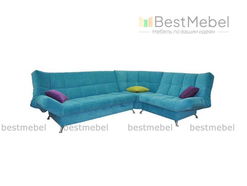 Яркую индивидуальность этой модели углового дивана придает комбинация из трех модулей – дивана, кресла и углового элемента. Современный вид подчеркивают сочная однотонная обивка, цветные подушки, металлический изогнутые ножки. Как и для всех диванов с механизмом «Клик – кляк», для него характерны несколько положений спинки и подлокотников. Спальное место широкое, полноценная двуспальная кровать. На угловом диване Мирам 2 BMS по вечерам разместится вся семья, а ночью он подарит своим владельцам комфортный сон.