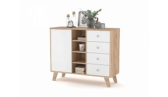 Комод Аллегро 14 BMS станет практичным выбором для небольших помещений благодаря компактным размерам. Лаконичная модель в скандинавском стиле располагается на высоких скошенных ножках и выполнена в сочетании древесных тонов и белого. В центральной части комода имеются открытые полки для необходимых под рукой вещей, а по бокам модель оборудована глухим отделением и четырьмя выдвижными ящиками. Купить комод Аллегро 14 BMS приглашаем недорого в наш интернет-магазин.