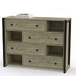 Комод Денау 1 BMS в трендовом оттенке под массив дерева подчеркнет индивидуальность лофта и поможет организовать удобное хранение. Четыре вместительных выдвижных ящика, оснащенных парными круглыми ручками, чередуются с глубокими нишами, в которых можно расположить книги, предметы декора и важные мелочи. Металлические опорные рамы придают конструкции устойчивость и надежность. Купить комод Денау 1 BMS приглашаем в наш интернет-магазин с выбором оптимальных габаритов и цвета.