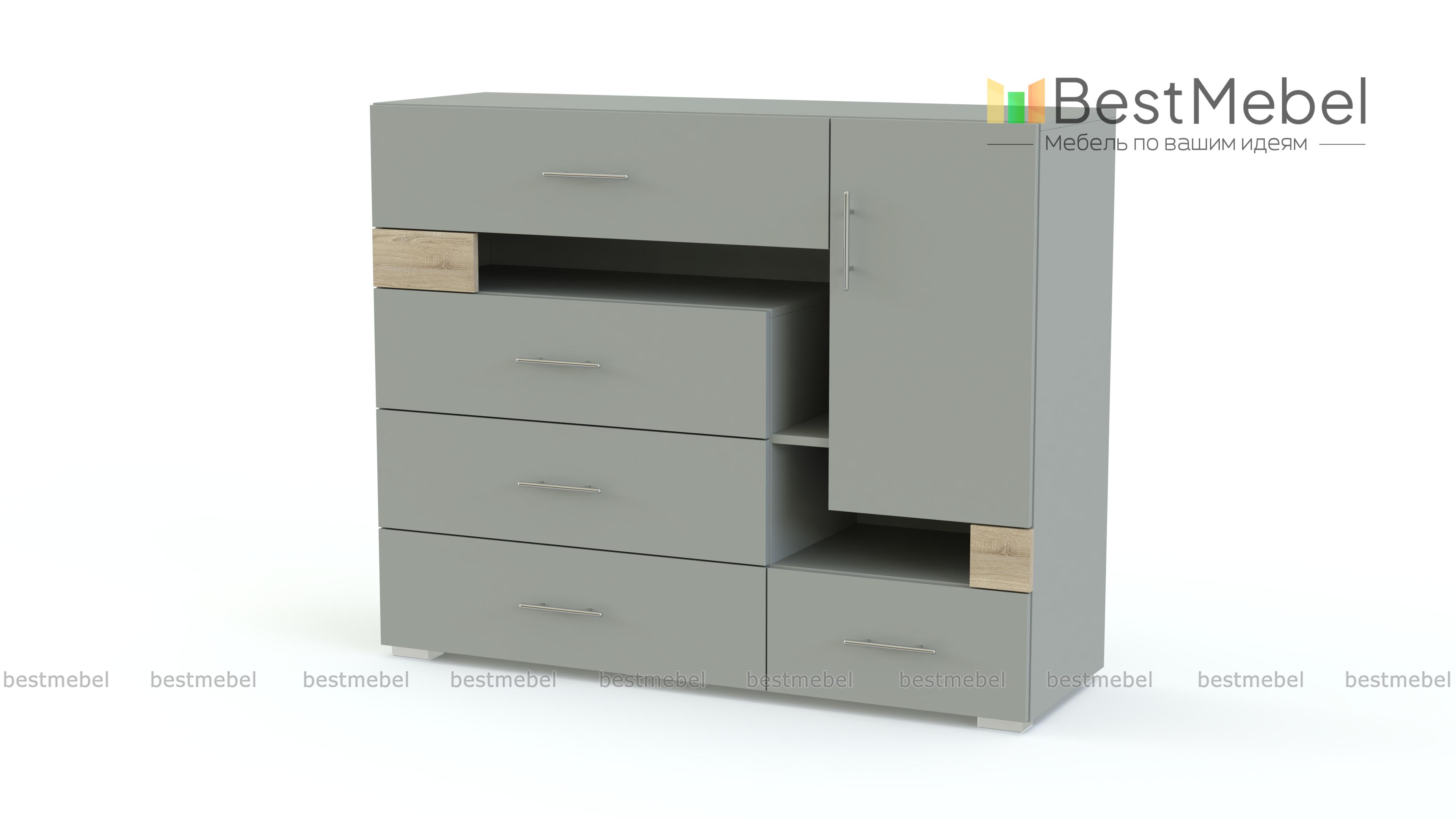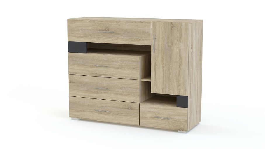 Комод Next NX10 BMS – это вместительность и оригинальный дизайн, которые станут отличным решением для подростковой комнаты и современного домашнего интерьера. Выполненный в нейтральный оттенках под массив дерева, комод декорирован контрастными элементами-вставками, а асимметрично расположенные выдвижные ящики, ниши и распашное отделение не только практичны, но и добавят в обстановку свежие акценты. Купить комод Next NX10 BMS, яркий и функциональный, вы сможете в нашем интернет-магазине.