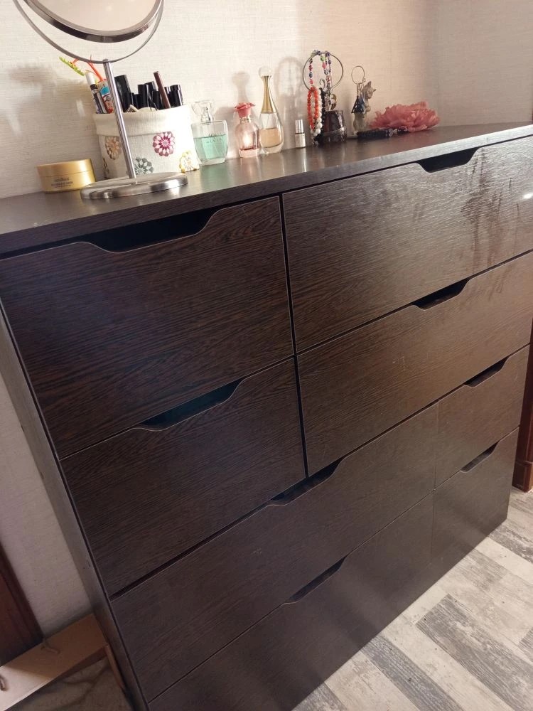 Хочу оставить отзыв о данном комоде. Заказывали через сайт с доставкой дома в феврале 2025 года. Комод искали очень долго, так как нигде именно серого цвета не было, сколько магазинов и сайтов не пересмотрела, еще что очень нравится в данном магазине, что можно подогнать мебель по своим размерам, что мы и сделали с комодом) Комод идеально подошел по цвету к гардеробной, просто один в один. Сам комод очень красивый, вместительный и функциональный. Доставка была осуществлена во время. Все комплектующие к комоду были в наличии. Очень довольна покупкой данного комода. Спасибо большое «Бестмебель»! Вернемся к вам, еще и не раз!