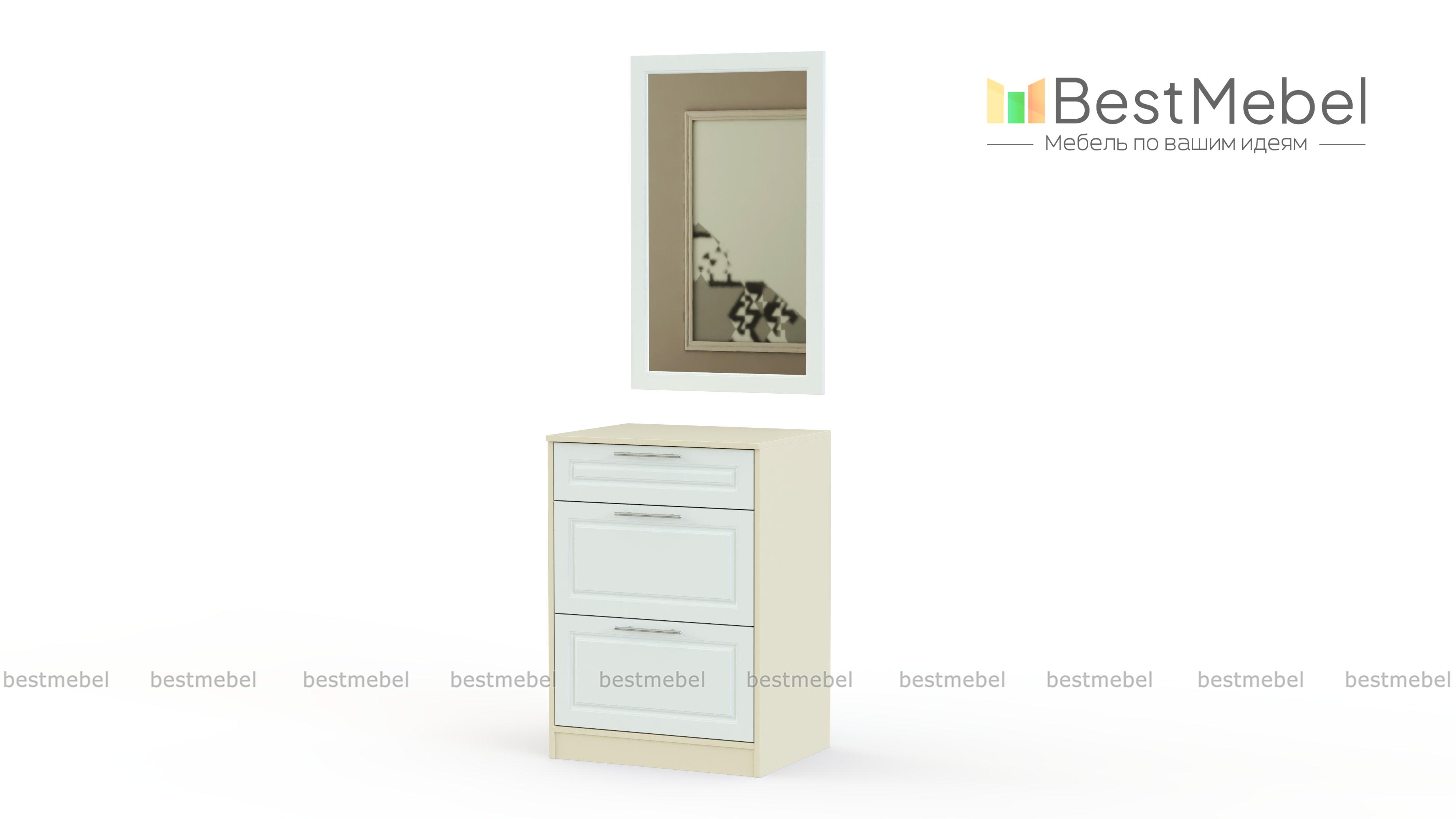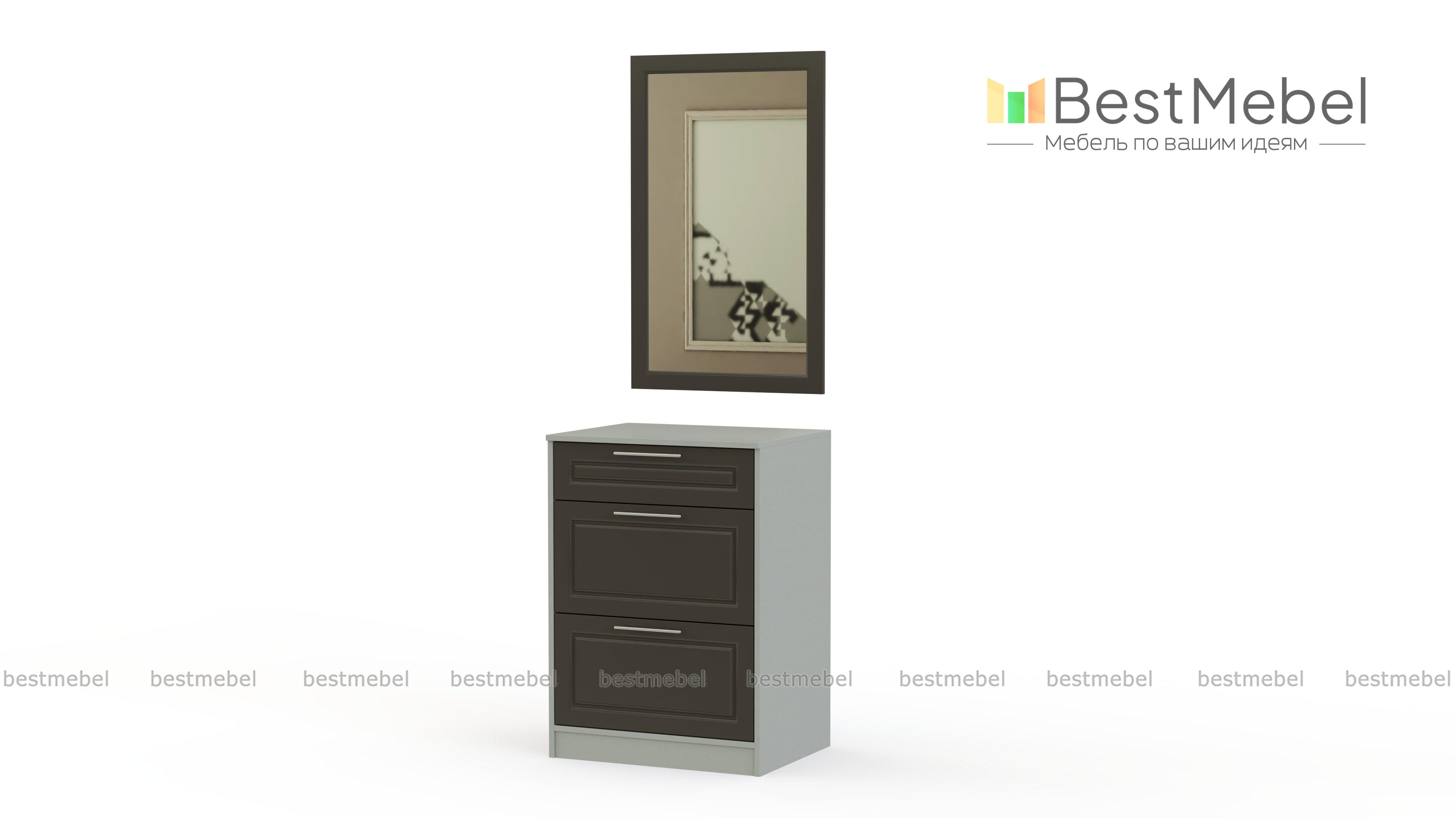 Комод Пульс 42 BMS составляет элегантный комплект с зеркалом в классической прямоугольной раме. В небольшом комоде, который гармонично вписывается в пространство современной квартиры, предусмотрен один выдвижной ящик для мелочей и два вместительных отделения для обуви. На фрезерованные фасады комода установлены стильные поперечные ручки-рейлинги. Купить комод Пульс 42 BMS для меблировки входной зоны вы сможете недорого на сайте нашего интернет-магазина.