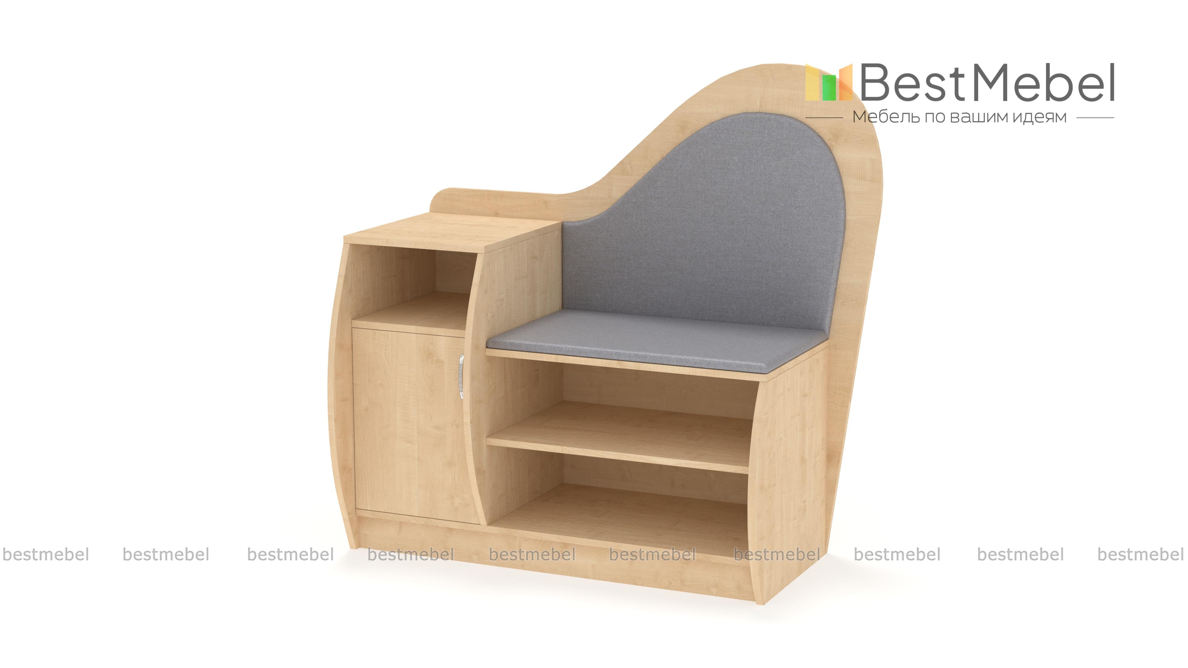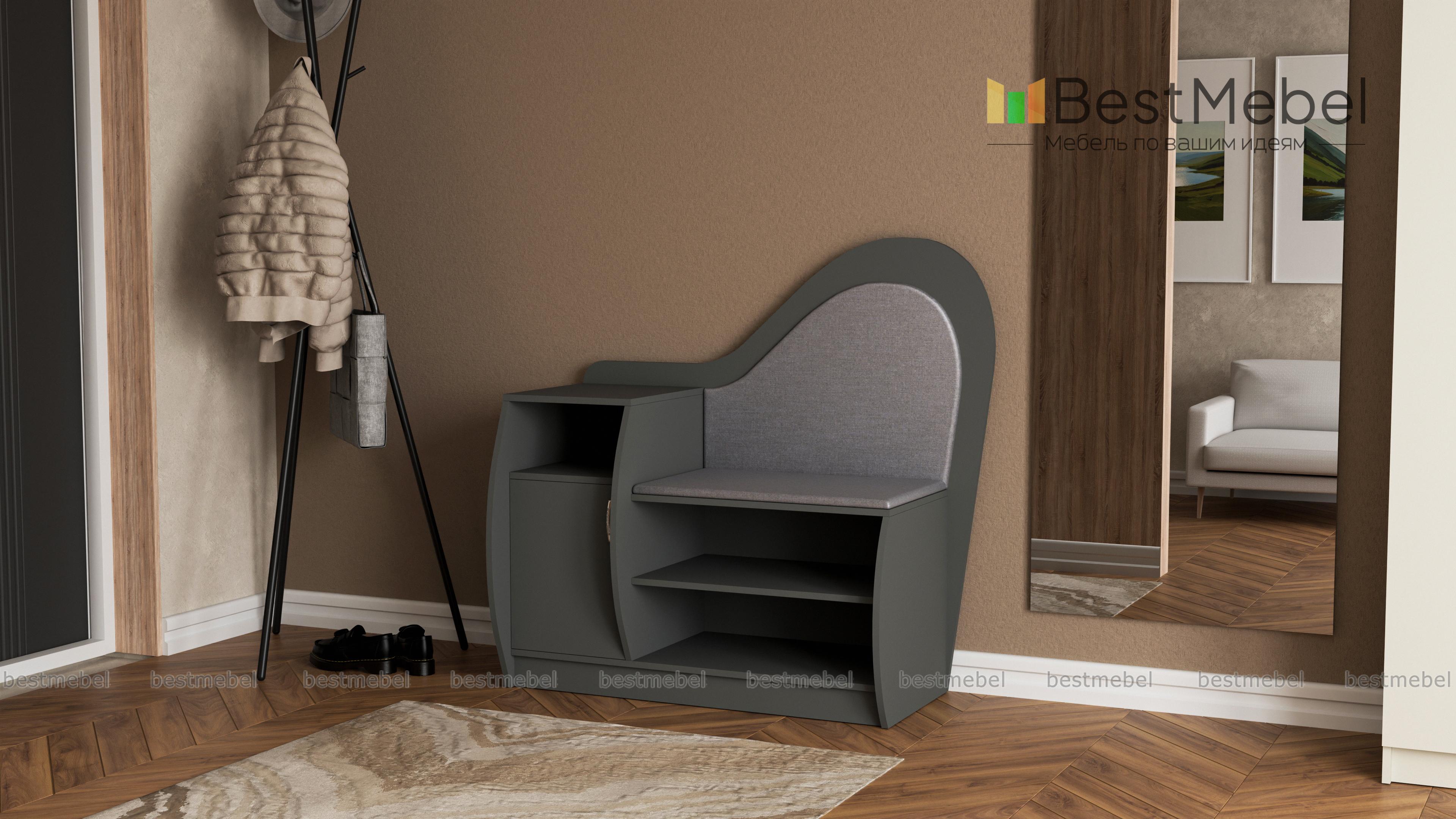Обувница Литта 1 BMS сочетает практичность конструкции и оригинальный дизайн. Благодаря фигурно вырезанным элементам и скругленным боковинам модель займет одно из центральных мест в интерьере прихожей. Комбинированная обувница оборудована открытыми полками, тумбой с распашным отделением и нишей для аксессуаров и сиденьем с высокой спинкой в мягкой тканевой обивке. Купить обувницу Литта 1 BMS и эффективно использовать пространство вам поможет наш интернет-магазин.