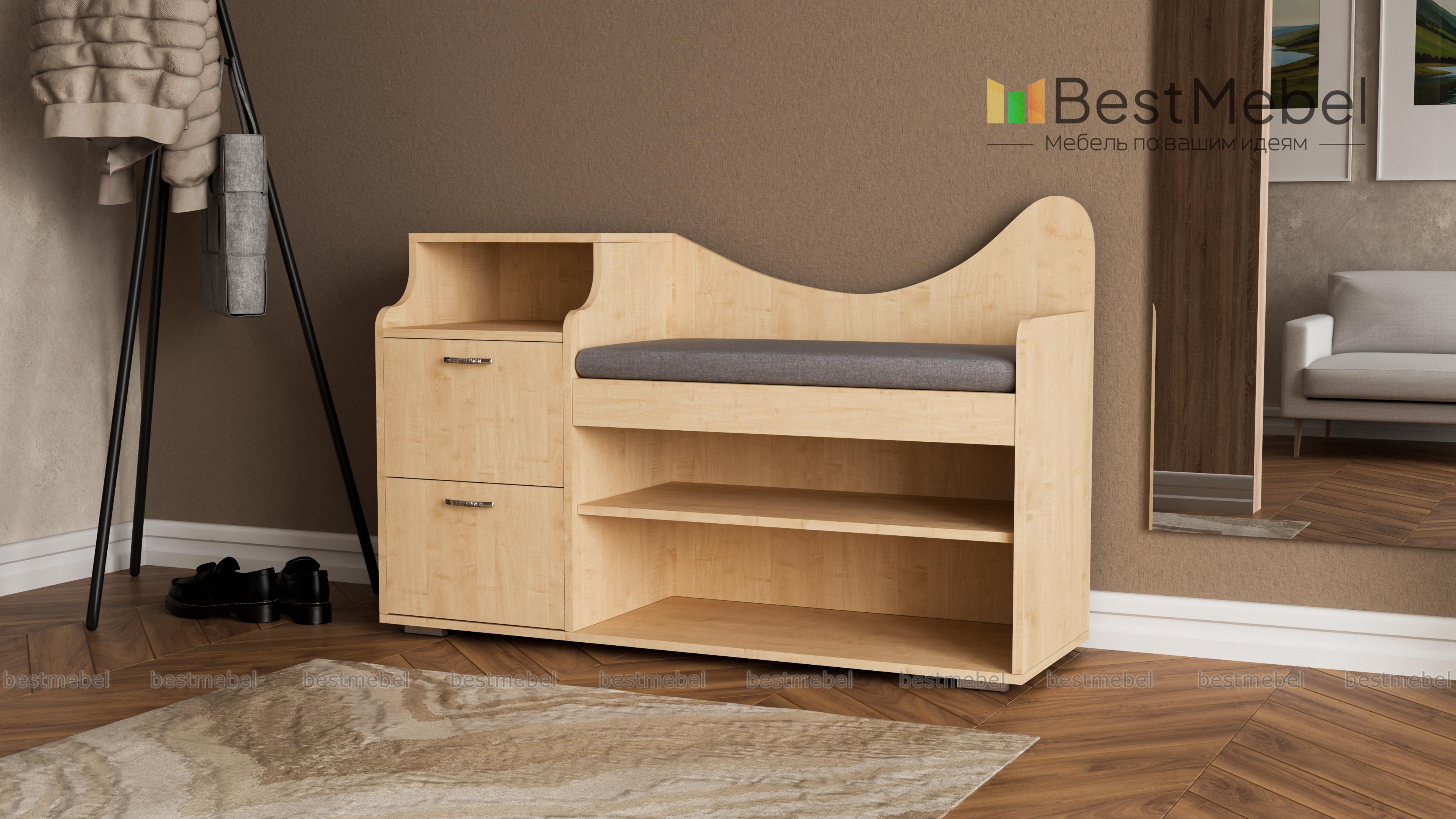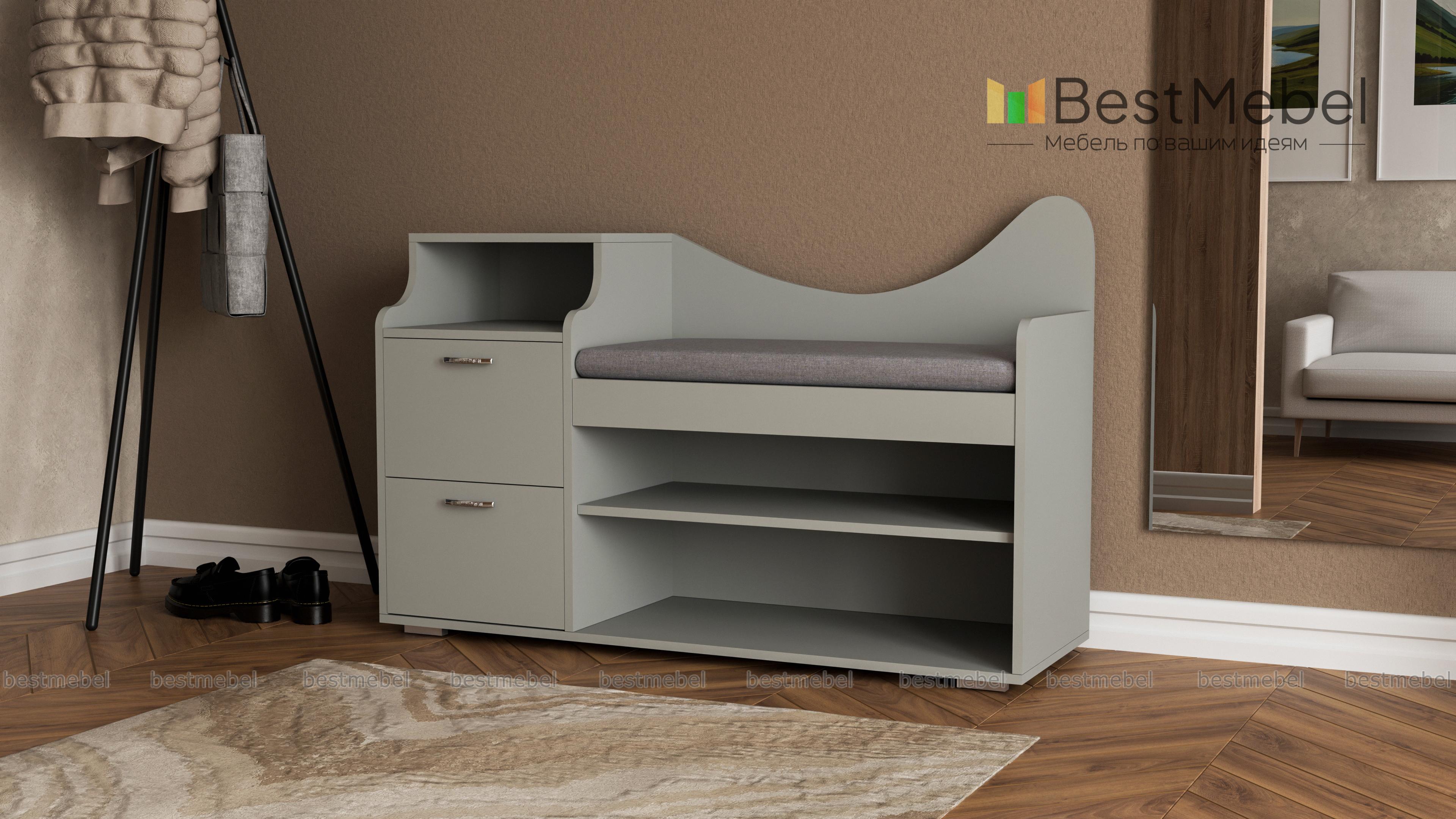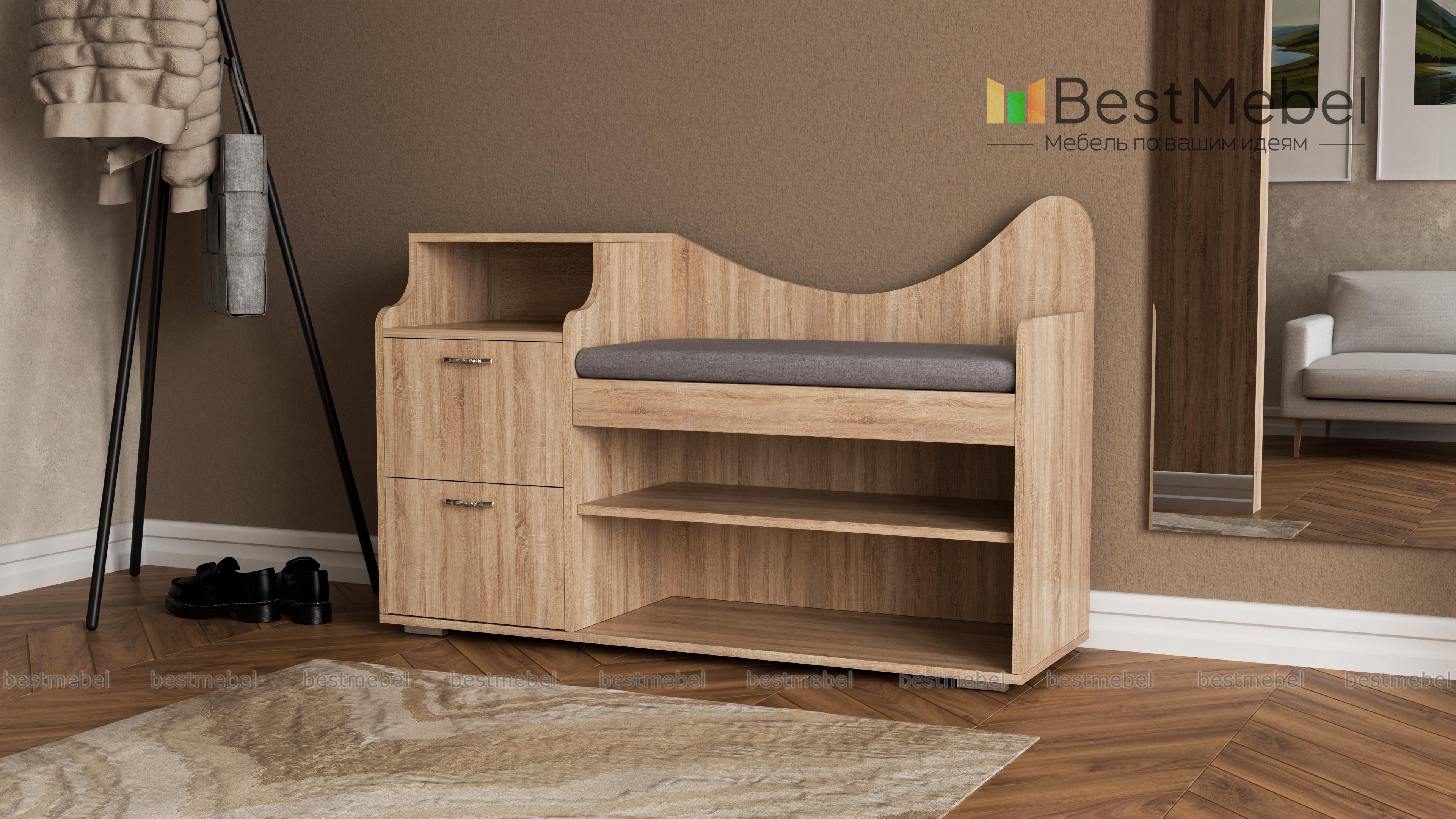 Обувница Луиза 2 BMS привлекает элегантным и функциональным дизайном. Комбинированная модель объединила открытые обувные полки, два выдвижных ящичка для хранения мелочей, нишу и комфортное сиденье с мягкой обивкой в ткани. Эффектный вид обувнице, выполненной в насыщенных темных тонах, придают фигурно вырезанная спинка и скругленные боковины. Купить обувницу Луиза 2 BMS и рационально организовать пространство вам поможет наш интернет-магазин.