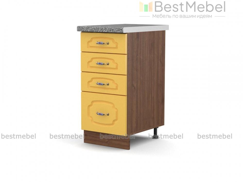 Эмилия шкаф напольный с 4-мя ящиками BMS – узкая модель, предназначенная для хранения разнообразных кухонных мелочей. Шкаф оборудован одним большим и тремя малыми выдвижными ящиками и позволит компактно разместить все необходимое для готовки. Элегантные фрезерованные фасады с ручками под серебро будут гармонично смотреться среди прочих модулей популярной классической серии. Купить Эмилия шкаф напольный с 4-мя ящиками BMS по демократичной цене приглашаем в наш интернет-магазин.
