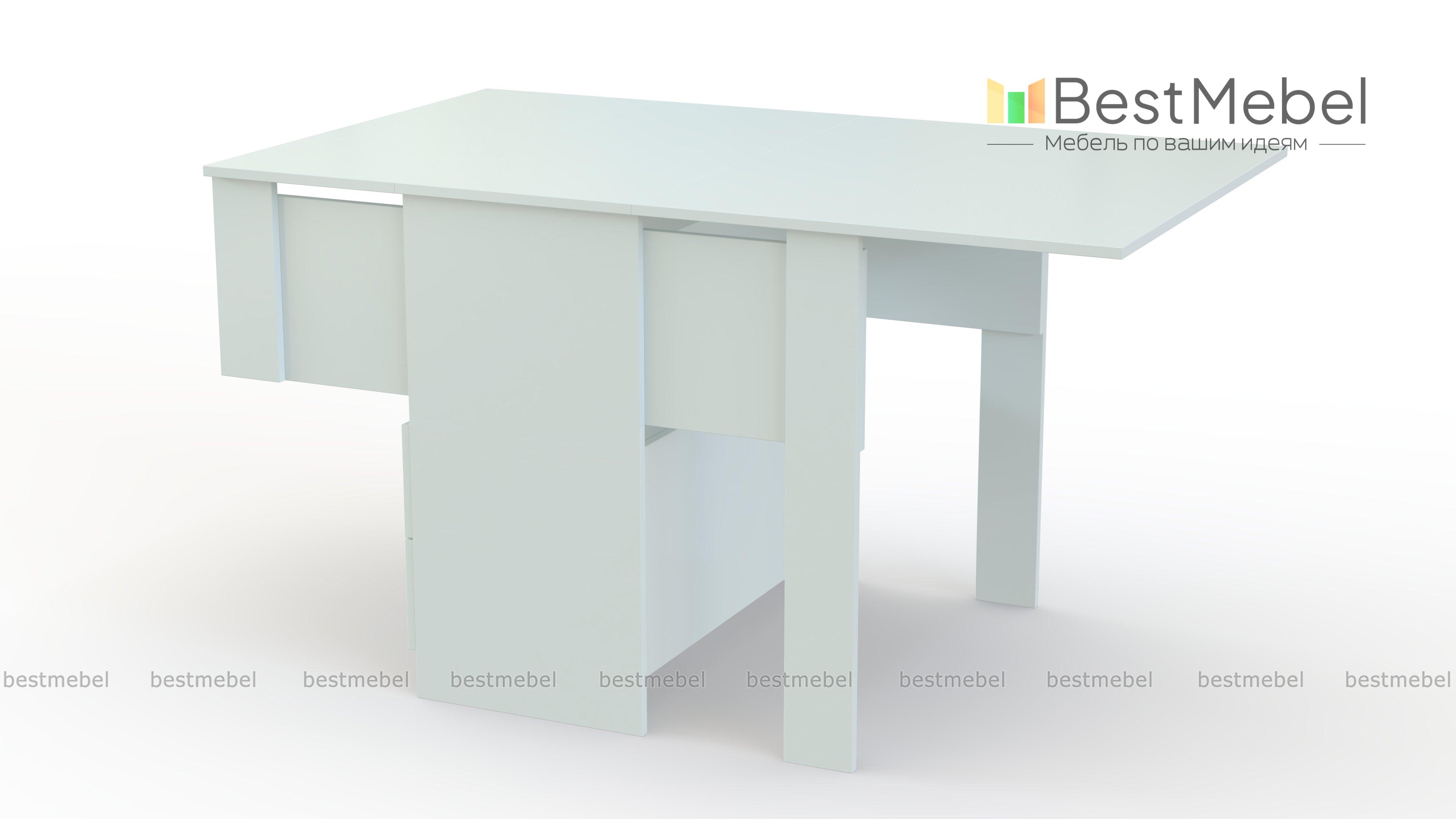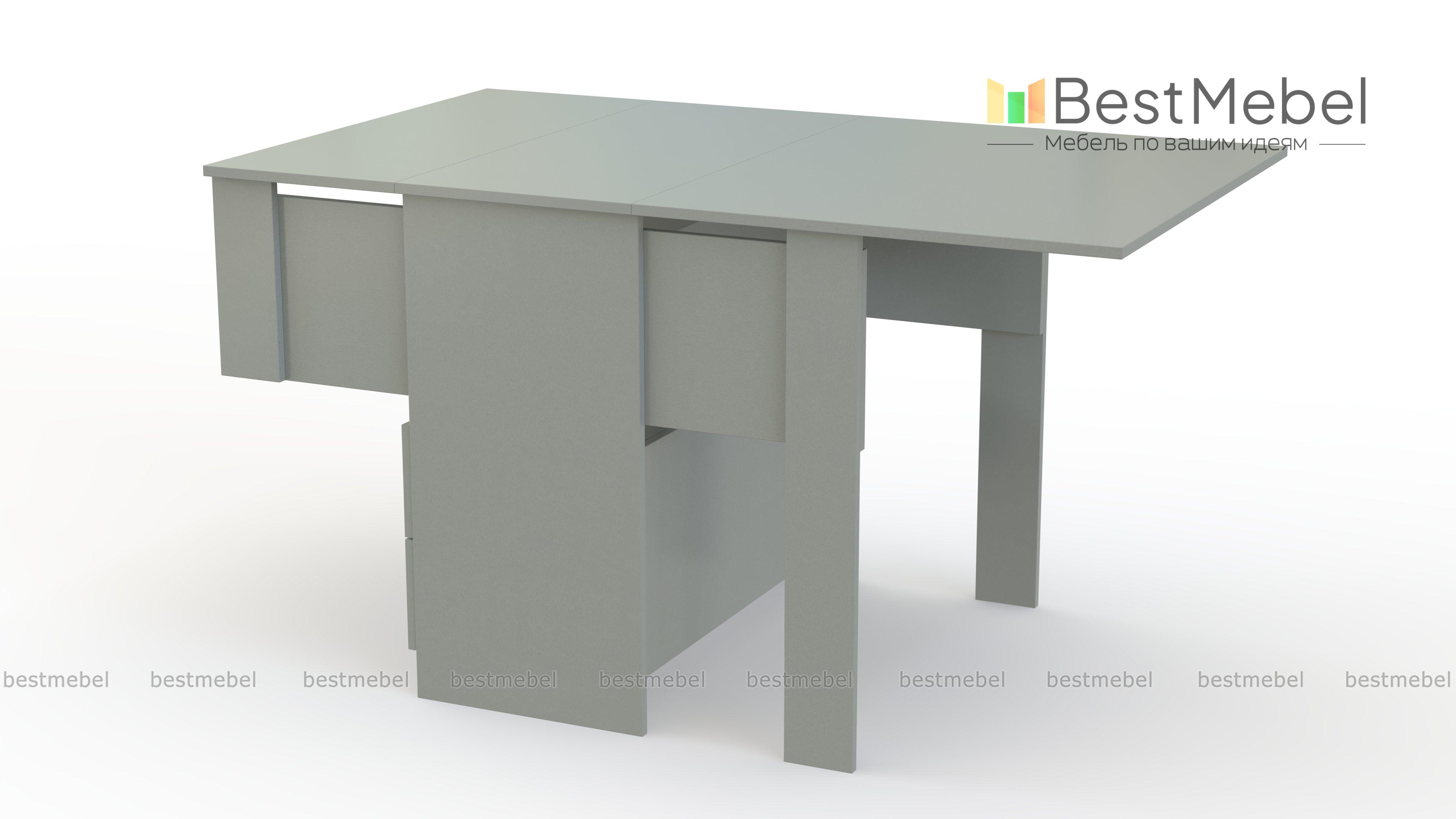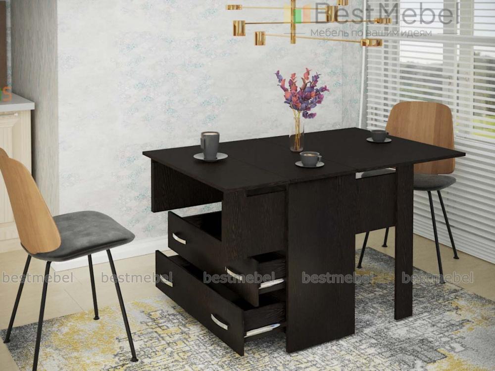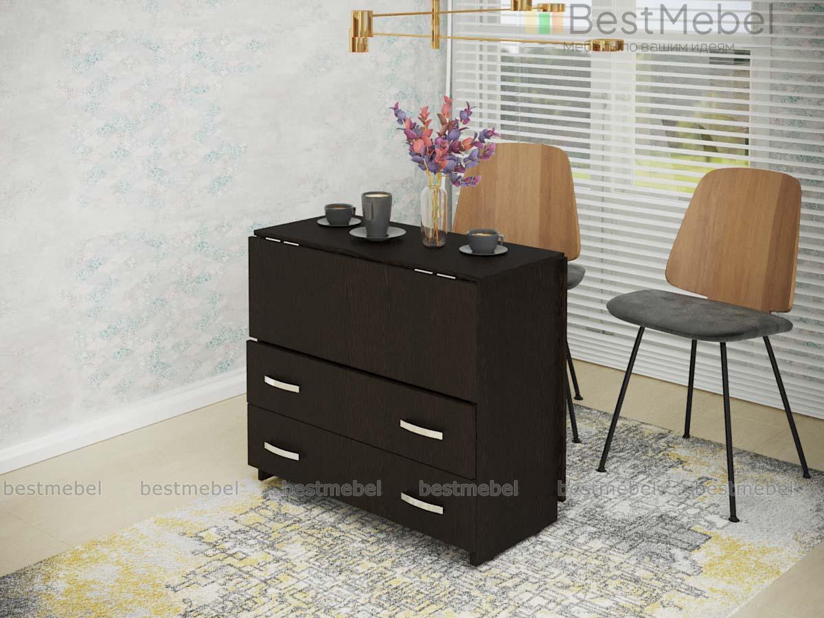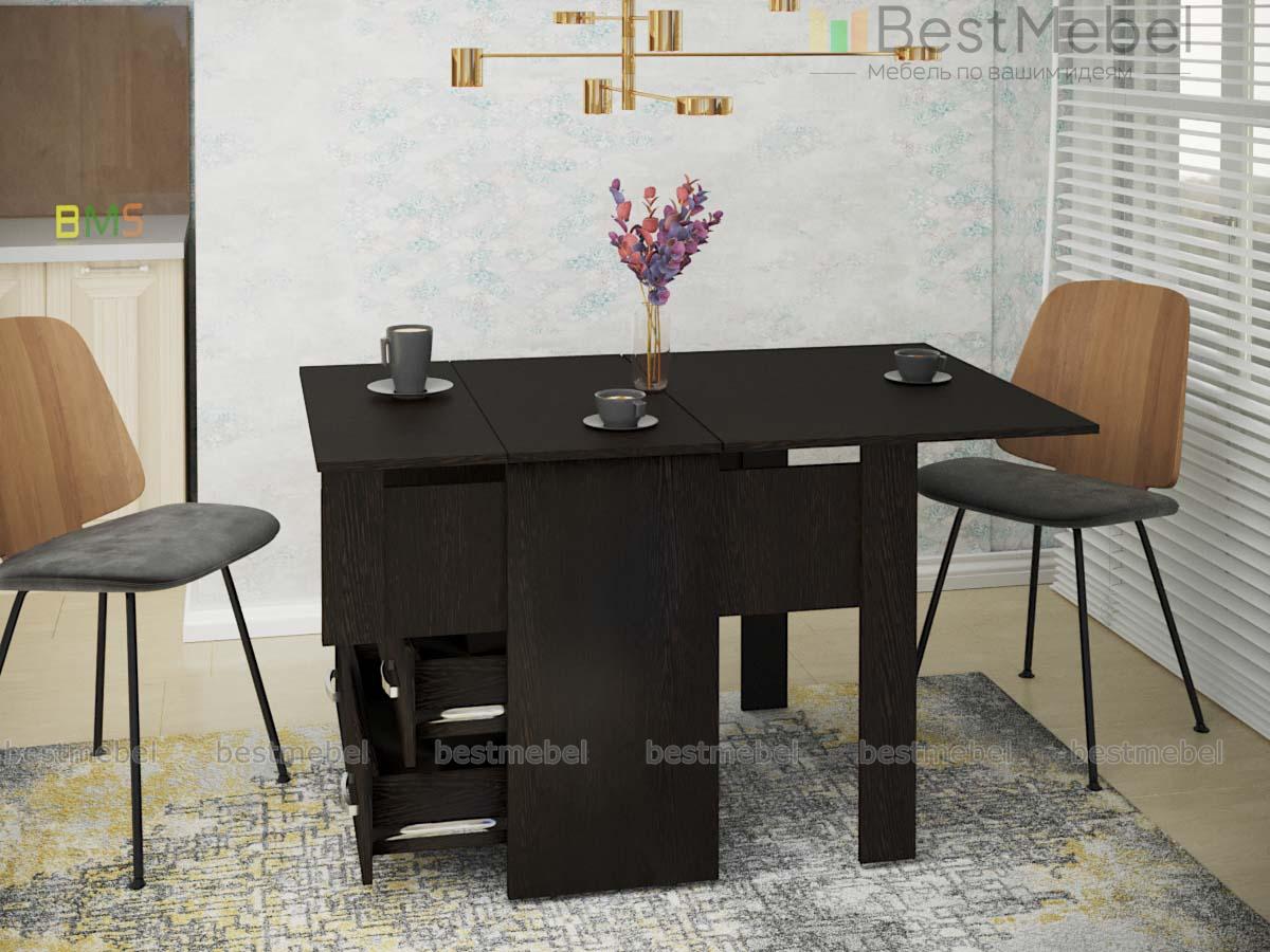Функциональный кухонный стол №2 BMS в сложенном виде компактен и представляет собой удобную тумбу, оборудованную двумя вместительными выдвижными ящиками и открытой полкой. При помощи простого проверенного механизма трансформации «Книжка» тумба превратится в небольшой столик на двоих или в полноценный обеденный стол. Темная расцветка придаст вашей кухне или гостиной элегантный, респектабельный вид. Доступная в нашем интернет-магазине цена делает модель популярной.