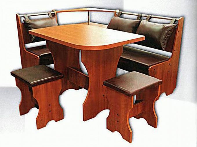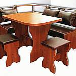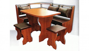 Классические элементы декора и современную функциональность гармонично объединяет кухонный уголок Лугань BMS. Угловая скамья оборудована мягким сиденьем и комфортными навесными подушками из практичного кожзама. Хозяйственные мелочи и предметы декора удобно разместятся на открытых полках центральной секции. Компактный стол с прямоугольной столешницей дополняют два табурета. Оригинально вырезанные боковины и натуральные оттенки придают модели стильный вид.