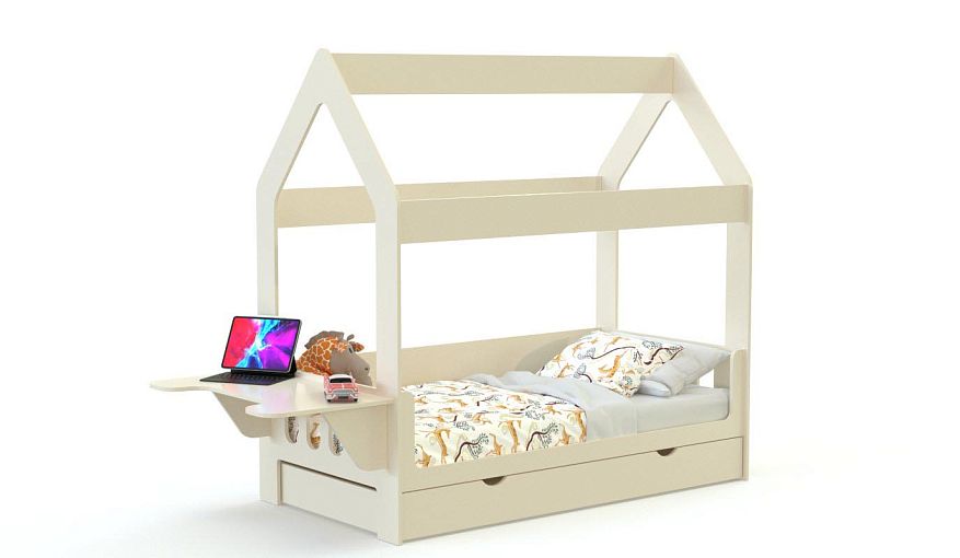 Кровать-домик Джинс 12.12 BMS, выполненная в трендовом ванильном цвете, станет главным элементом дизайна современной детской. Уютная модель в форме домика оборудована просторным спальным местом с фигурными бортиками и расположенным в основании широким выкатным ящиком для хранения постельных принадлежностей или игрушек. Торцевой столик с эргономичной столешницей удобен для учебы, игр и творческих занятий ребенка. Купить кровать-домик Джинс 12.12 BMS приглашаем в наш интернет-магазин.
