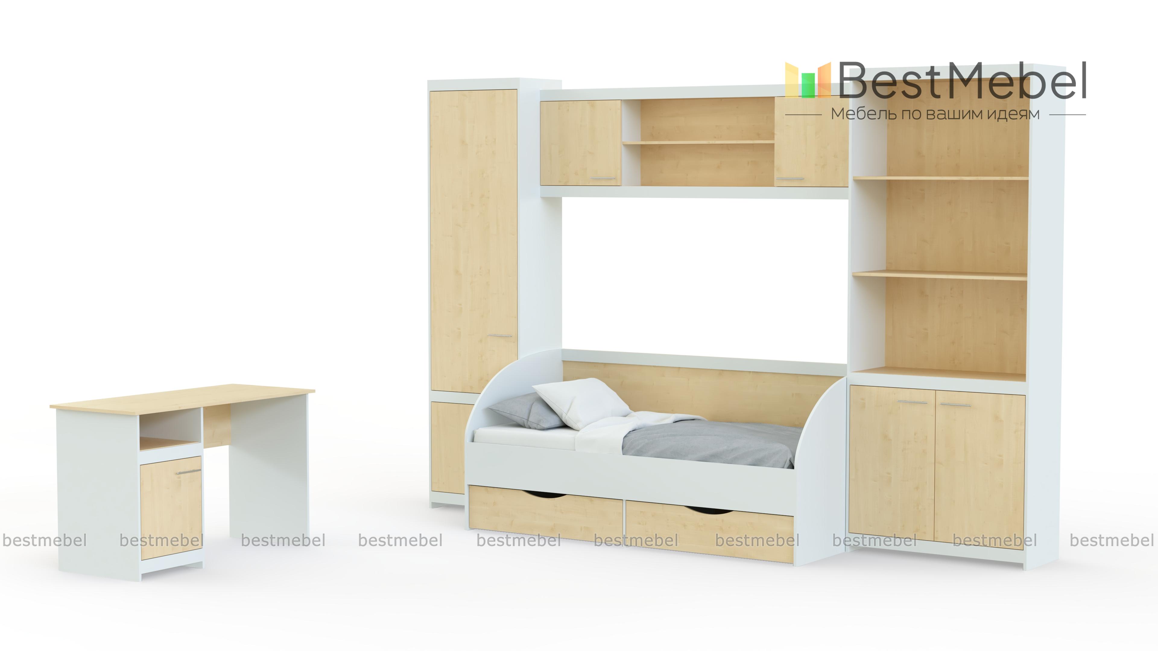 Мебель детская Спайдер BMS отличается лаконичным современным дизайном, который подчеркивает строгая контрастная расцветка, и станет отличным решением для комнаты подростка. Отдельные модули вы сможете разместить максимально удобно, оборудовав и просторное, и небольшое помещение. В комплекте письменный стол с тумбой, пенал, комбинированный книжный шкаф, навесная секция и кровать-софа с выдвижными ящиками для белья. Фасады декорированы элегантными накладками в тон корпусу. Купить мебель детскую Спайдер BMS по лучшей цене приглашаем в наш интернет-магазин.