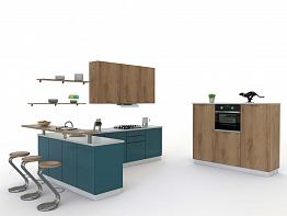 Угловая кухня с барной стойкой Лазурь BMS