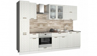 Кухня Агава Белая 2 BMS порадует любителей классики традиционным дизайном фасадов и благородными нейтральными оттенками. Вместительная модель станет прекрасным выбором для просторной кухни и разместит все необходимое благодаря продуманной комбинации распашных отделений и выдвижных ящиков. Тумбы нижней части дополнены навесными шкафчиками с распашными и откидными дверцами и высоким трехдверным пеналом. Изящно фрезерованные фасады украшают ручки-скобы под бронзу. Купить кухню Агава белая 2 BMS, подобрав наиболее подходящую расцветку, вы сможете в нашем интернет-магазине.