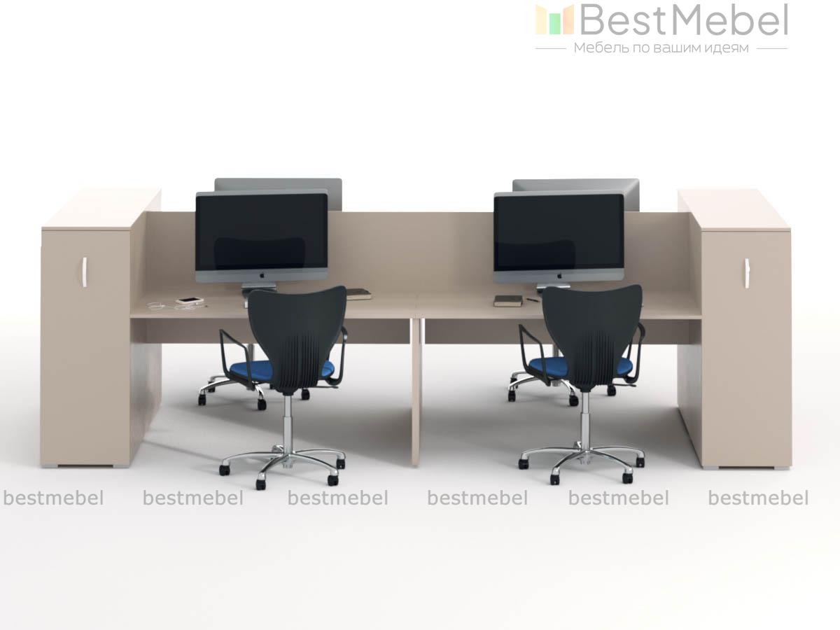 Бенч-система Элен BMS отличается крупными габаритами и будет гармонично смотреться в просторных современных офисах открытого типа. Выполненная в нейтральной бежевой гамме, оптимальной для создания комфортной рабочей атмосферы, композиция включает в себя прямоугольные столешницы, разделенные перегородкой, и торцевые тумбы с выдвижными секциями для документов. Купить бенч-систему Элен BMS и оборудовать рабочие места сразу для четырех сотрудников вам поможет наш интернет-магазин.