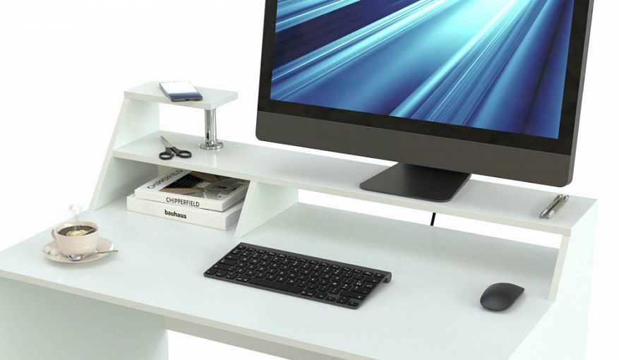 Подставка под монитор Шон-3 BMS сделает рабочее место более комфортным и эргономичным. Подставка во всю ширину стола оборудована просторной столешницей с надстройкой, а также разделенной перегородкой нишей для удобного хранения бумаг и канцелярских принадлежностей. Лаконичная модель выполнена в универсальном белом цвете, стильный вид конструкции придают скошенные по диагонали опоры и хромированная стойка. Купить подставку под монитор Шон-3 BMS вы сможете на сайте нашего интернет-магазина.
