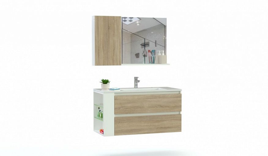 Комплект для ванной Кристи 5 BMS отличается эргономичностью и современным минималистичным дизайном. Подвесная композиция для просторной ванной комнаты включает в себя широкую тумбу под раковину, оборудованную двумя выдвижными ящиками и торцевыми полочками для мелочей, и навесным зеркалом с боковым шкафом. Устойчивые к действию влаги и истиранию поверхности надолго сохранят эстетичный вид. Купить комплект для ванной Кристи 5 BMS вы сможете в нашем интернет-магазине.
