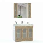 Комплект для ванной Тайти 5 BMS поможет вам создать комфортный современный интерьер. В составе композиции широкая напольная тумба с тремя распашными дверцами и навесное зеркало с боковыми шкафчиками для хранения мелочей, открытой нижней полкой и встроенной подсветкой. Стеклянные вставки в рамах древесных тонов визуально облегчают интерьер ванной комнаты и помогают быстро найти нужную вещь. Купить комплект для ванной Тайти 5 BMS вы всегда сможете на сайте нашего интернет-магазина.
