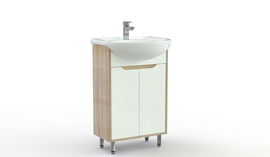 Тумба для ванной комнаты Нео 3 BMS поможет вам вписать в интерьер раковину и скрыть водопроводные коммуникации. Распашная пристенная модель без глухой задней стенки оборудована вместительными внутренними полками для хранения бытовой химии, аксессуаров и нужных мелочей. Расположенная на высоких хромированных опорах тумба выполнена в актуальном сочетании светлых белых тонов и универсального древесного оттенка. Купить тумбу для ванной комнаты Нео 3 BMS приглашаем в наш интернет-магазин по доступной цене.