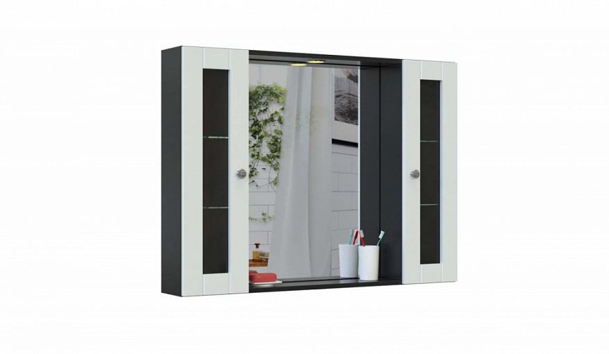 Зеркало для ванной Гера 4 BMS, выполненный в сочетании белого и темных древесных тонов с контрастным профилем, поможет создать брутальный лофтовый интерьер. Двойной шкаф оборудован большим зеркалом, незаменимым для комфортного ухода за собой, и распашными боковыми шкафчиками для хранения уходовых средств. В нижней части шкаф дополнен открытой полочкой, а в верхней – козырьком со встроенной подсветкой. Купить зеркало для ванной Гера 4 BMS с выбором цвета и фурнитуры по каталогу приглашаем в наш интернет-магазин.