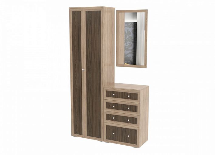 Прихожая Санта-2 BMS – это модульный мини-комплект, включающий в себя двухдверный платяной шкаф, комод с выдвижными ящиками разных размеров и навесное зеркало. Универсальная композиция будет востребована как в интерьере прихожей, так и других помещений дома, компактно разместив предметы гардероба. Рамочные фасады древесных тонов гармонично впишутся в интерьеры классического типа, а оптимальный оттенок вы сможете подобрать самостоятельно. Купить прихожую Санта-2 BMS, практичную и надежную в эксплуатации, приглашаем в наш интернет-магазин.