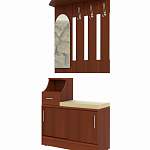 Такая модель подойдет хозяевам небольшой квартиры, где хочется сэкономить место. Прихожая имеет несколько отделений. Место для верхней одежды и зеркало объединены и крепятся на стену. Ниже находятся закрытые полки для обуви, ящички для личных предметов, аксессуаров и средств по уходу за одеждой и обувью. Также имеется место, куда Вы можете присесть пока обуваетесь. Купить такую модель можно на нашем сайте. Перед покупкой можно изменить цвет и параметры изделия.