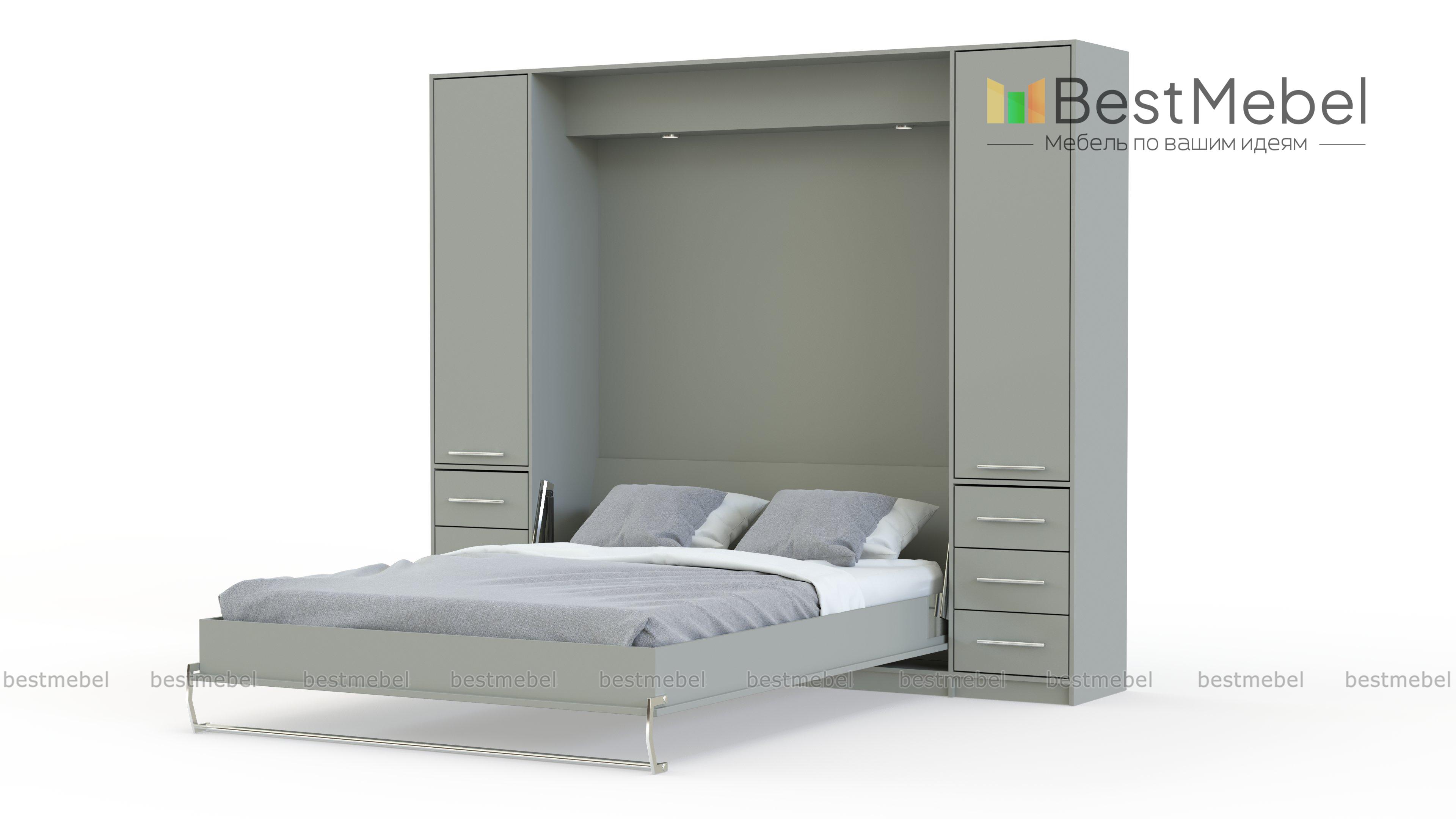 Мы не рекомендуем покупать пружинные матрасы к шкафу-кровати. Стоит отдавать предпочтение беспружинным изделиям. Это связано с тем, что поведение пружин в вертикальном положении матраса невозможно предсказать. Матрас быстро подвергается деформации и смещению слоев. Идеальным вариантом для откидной модели будет лёгкий беспружинный матрас, основу которого составляют современные материалы, не имеющие в составе пружины.