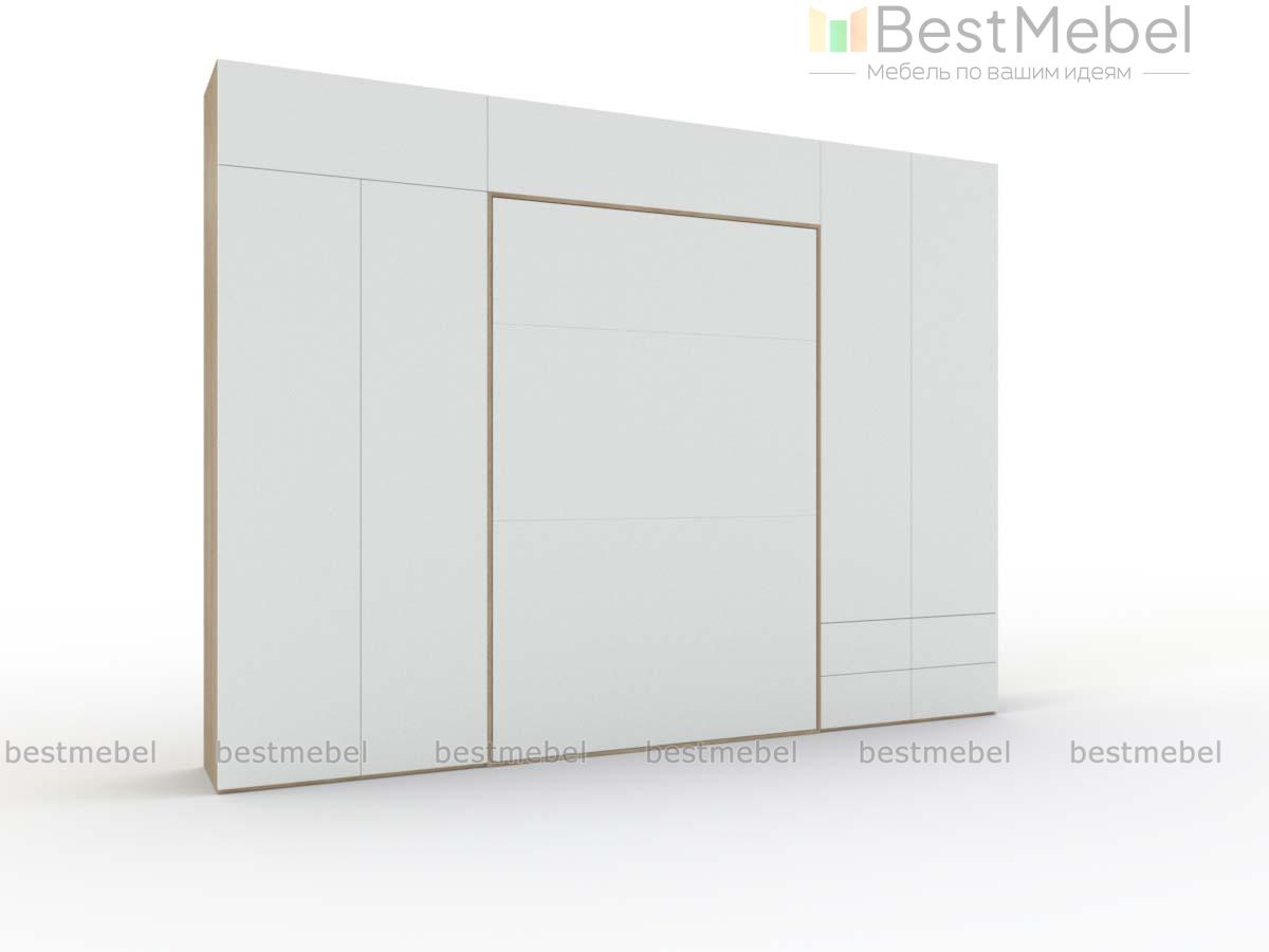 Шкаф-кровать трансформер Рубин 11 BMS по достоинству оценят поклонники минимализма. Лаконичный шкаф с корпусом светлых древесных тонов и белым гладким фасадом отличается визуальной легкостью и высокой функциональностью. Композиция объединила два распашных шкафа для одежды, вместительную антресоль и расположенным в центре модуль-трансформер с откидной кроватью. При помощи вертикального механизма вы получаете полноценное спальное место, а гостиная превращается в спальню. Купить шкаф-кровать трансформер Рубин 11 BMS приглашаем в наш интернет-магазин.