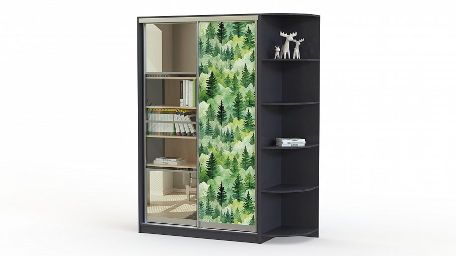 Шкаф-купе Марко 5 BMS, совмещенный со стеллажом, создан для тех, кто ищет компактный и вместительный вариант с оригинальным дизайном. В левой части шкафа, закрытой прозрачным стеклом и зеркалами, можно эффектно расположить книги, а в правой – одежду и прочие предметы гардероба. Фасад платяного отделения украшен износостойким принтом природной тематики. Купить шкаф-купе Марко 5 BMS в гостиную или комнату школьника вы сможете по доступной цене на сайте нашего интернет-магазина.