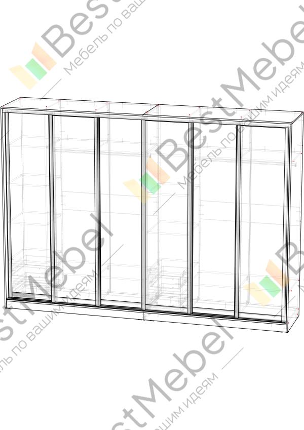 Шкаф-купе Остин Лайт 16 BMS поможет не только убрать ваш гардероб и постельные принадлежности, но и визуально скорректирует размеры помещения. Полностью зеркальный фасад шестидверной модели сразу делает прихожую, гостиную или спальню светлее и больше. За легко движущимися по направляющим раздвижными створками скрыты две штанги для одежды на вешалках и два ряда бельевых полок. Купить шкаф-купе Остин Лайт 16 BMS приглашаем в наш интернет-магазин с изготовлением по индивидуальным размерам.