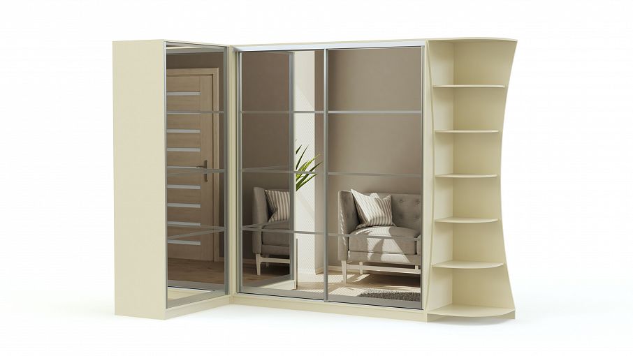 Шкаф-купе угловой Фанни BMS – это гармоничное сочетание надежности, элегантного дизайна и доступной цены. Практичная угловая модель экономно использует пространство и визуально расширяет границы помещения благодаря полностью зеркальным фасадам. Выполненный в светлых ванильных тонах и декорированный профилем, шкаф выглядит легким, несмотря на габариты. Компактно разместить предметы гардероба, интерьерные украшения и бытовые мелочи помогут отделения со штангой, полки и фигурно вырезанный торцевой стеллаж. Купить шкаф-купе угловой Фанни BMS приглашаем в наш интернет-магазин.