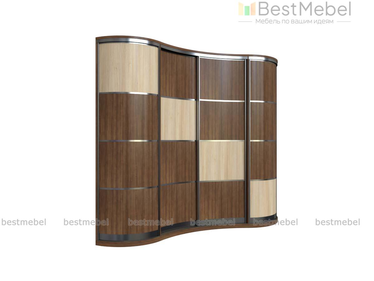 Шкаф-купе радиусный Форт МП-7 BMS выполнен в спокойных древесных тонах с декоративным делением профилем в оттенке серебро и гармонично дополнит интерьер современной спальни, гостиной, просторной прихожей. Угловая композиция с волнообразным фасадом включает в себя вогнутое отделение с раздвижными дверцами и симметрично расположенные торцевые секции с выпуклым фасадом. Вместительный шкаф поможет организовать удобное хранение гардероба и постельных принадлежностей. Купить шкаф-купе радиусный Форт МП-7 BMS приглашаем в наш интернет-магазин.