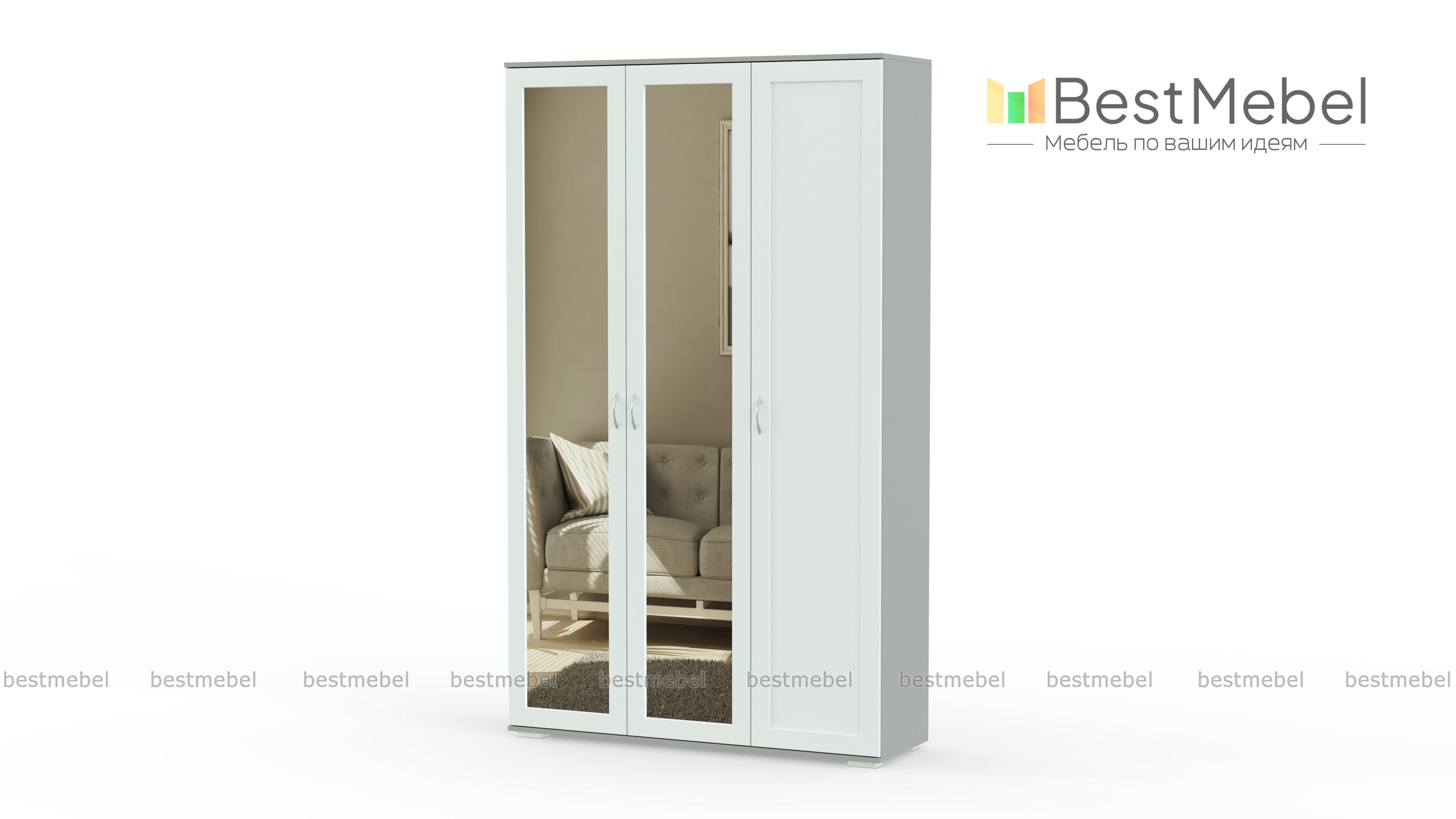 Распашной шкаф Гала Р BMS - базовый вариант для хранения гардероба в спальне и прихожей. Трехдверная модель с одной глухой створкой и двумя зеркальными, заключенными в широкие рамки с ручками-скобами, выполнена в духе современной классики. Износостойкие материалы, надежная фурнитура и продуманное наполнение делают пользование шкафом комфортным. Купить распашной шкаф Гала Р BMS с выбором размеров, цвета и компоновки вы сможете на сайте нашего интернет-магазина.