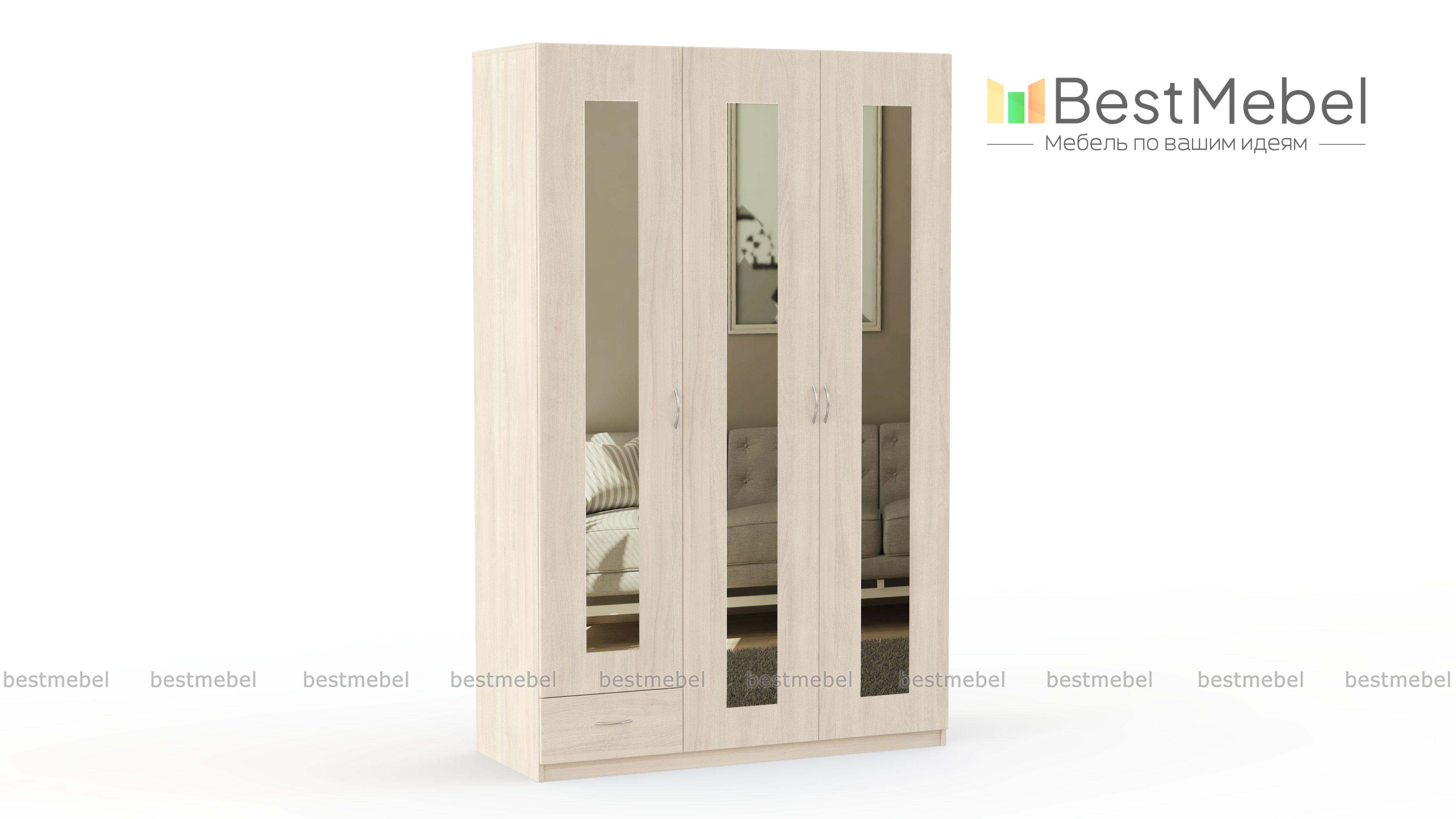 Распашной шкаф Паулина 24 BMS поможет не только компактно разместить одежду, обувь и аксессуары, но и визуально расширить границы комнаты. Трехдверная модель оборудована платяным и бельевым отделениями, а также выдвижным ящиком для мелочей в основании. Фасад шкафа, выполненного в древесных тонах, декорирован вертикальными зеркальными накладками. Купить распашной шкаф Паулина 24 BMS, подобрав наиболее подходящее цветовое решение, приглашаем в наш интернет-магазин.