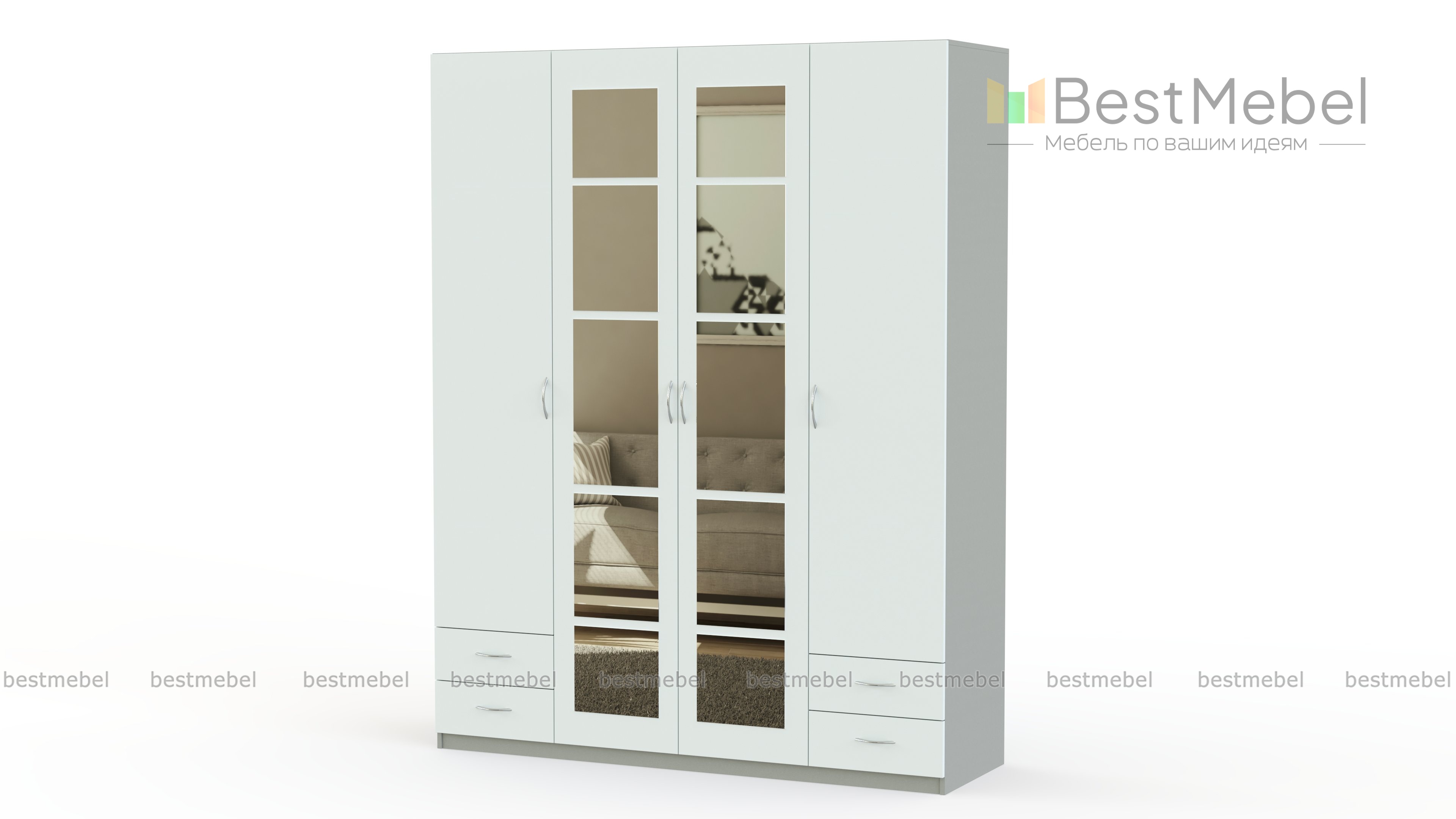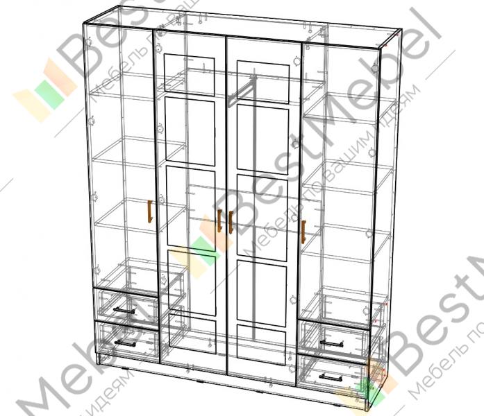 Распашной шкаф Паулина 46.1 BMS – это четырехдверная модель, оборудованная, помимо стандартных отделений с полками и штангой, четырьмя выдвижными ящиками для хранения мелочей. Классические распашные дверцы обеспечат удобный доступ к вещам и комфортны в эксплуатации благодаря качественной фурнитуре. Зеркала в центральной части фасада придают шкафу эффектный вид и визуально расширяют пространство. Купить распашной шкаф Паулина 46.1 BMS по доступной цене приглашаем на сайт нашего интернет-магазина.