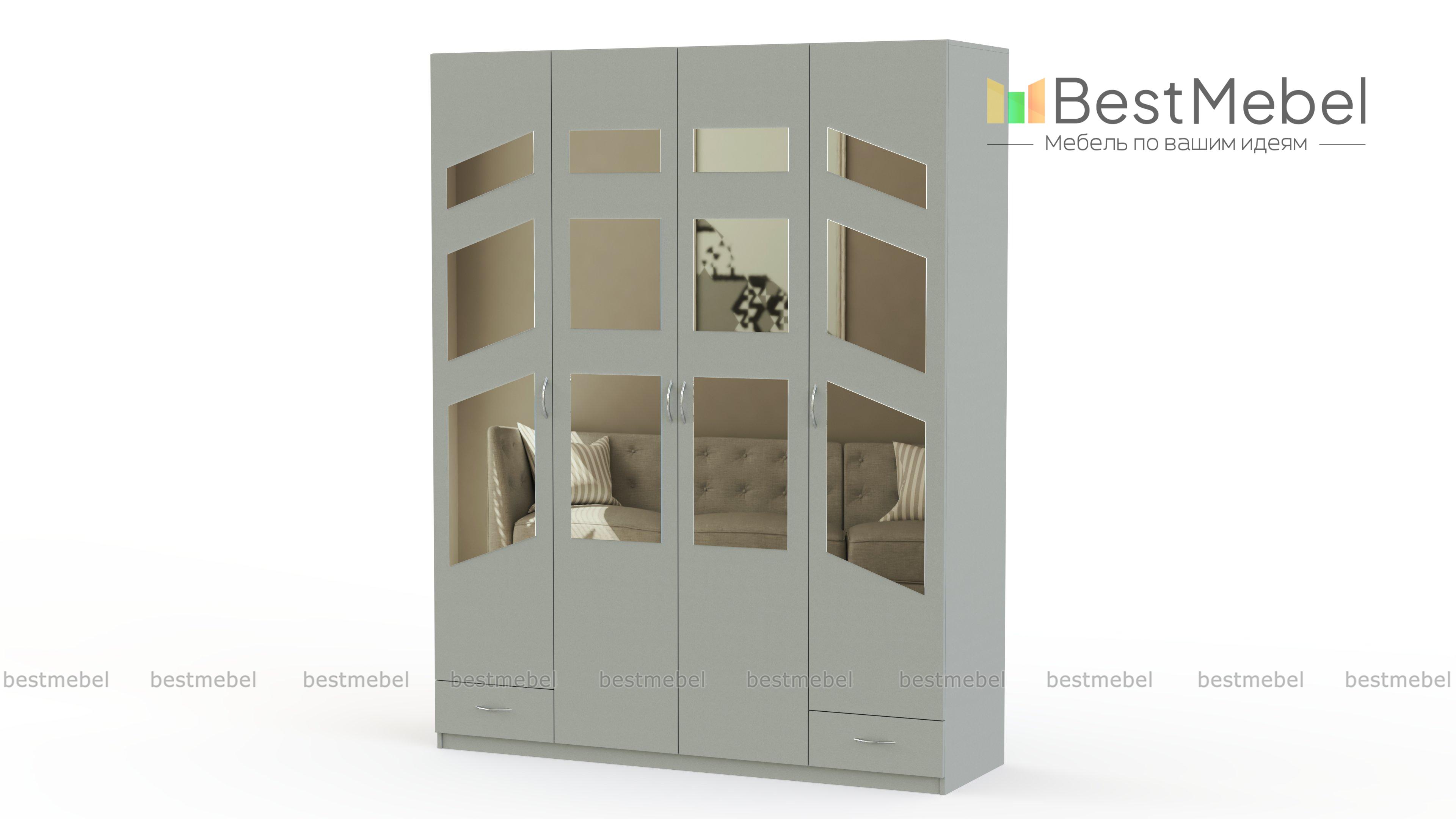 Распашной шкаф Паулина 51.1 BMS станет главным элементом дизайна спальни или гостиной благодаря оригинальному фасаду с геометричными зеркалами. Четырехдверная модель традиционной, проверенной временем конструкции оборудована платяным отделением, секциями с бельевыми полками и двумя выдвижными ящиками для мелочей. Залогом долговечности станут износостойкие материалы и надежная фурнитура. Купить распашной шкаф Паулина 51.1 BMS вы сможете в нашем интернет-магазине по доступной цене.