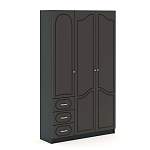Классический образец мебели, объединяющий в себе шкаф на три отделения, и мини-комод, имеющий три выдвигающихся ящичка. Два платяных отделения выглядят не громоздкими, но довольно вместительны. Полочки в третьем отделении поможет аккуратно хранить бельё и прочие вещи в нужном порядке. Заказать данную модель у нас на сайте Вы сможете в любое оптимальное для Вас время, определив размеры и цветовое оформление по своему вкусу.