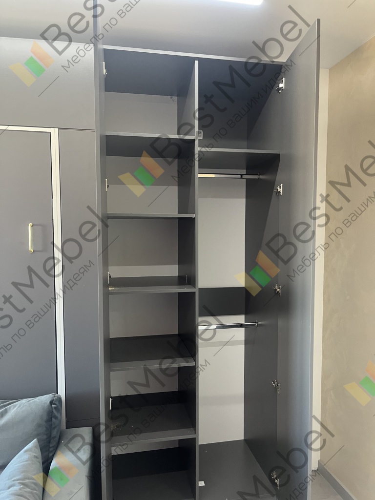 Шкаф распашной Ализе 9 BMS в темном оттенке поможет создать выразительное и стильное пространство. Двухдверная конструкция с длинной торцевой ручкой отличается простой геометрией, компактными размерами и хорошей вместительностью, позволяя хранить базовый гардероб. В левой части шкафа находятся бельевые секции, а в правой — штанга и пара полок. Купить шкаф распашной Ализе 9 BMS с индивидуальным подбором цвета и габаритов приглашаем в наш интернет-магазин.