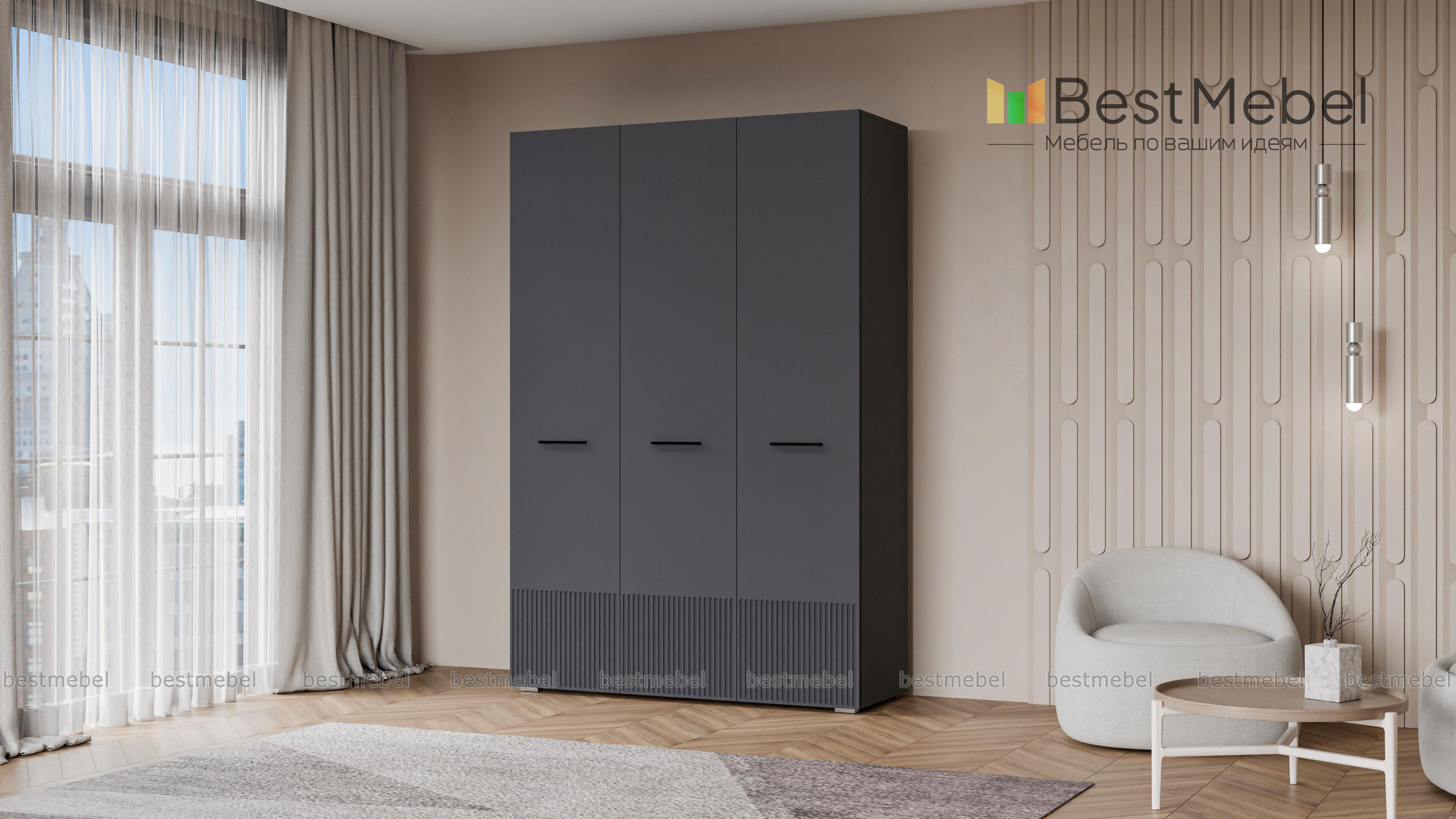 Шкаф распашной Декарт 3 BMS сохранит порядок в спальне, детской комнате или входной зоне. За двумя дверцами справа скрыта штанга для одежды, а однодверное отделение слева оборудовано полками. Элегантный фасад с рельефом и оригинальными ручками-скобами хорошо сочетается с разными интерьерами, помогая создать гармоничную обстановку. Купить шкаф распашной Декарт 3 BMS вы сможете в нашем интернет-магазине, самостоятельно подобрав размеры, цвет и наполнение.