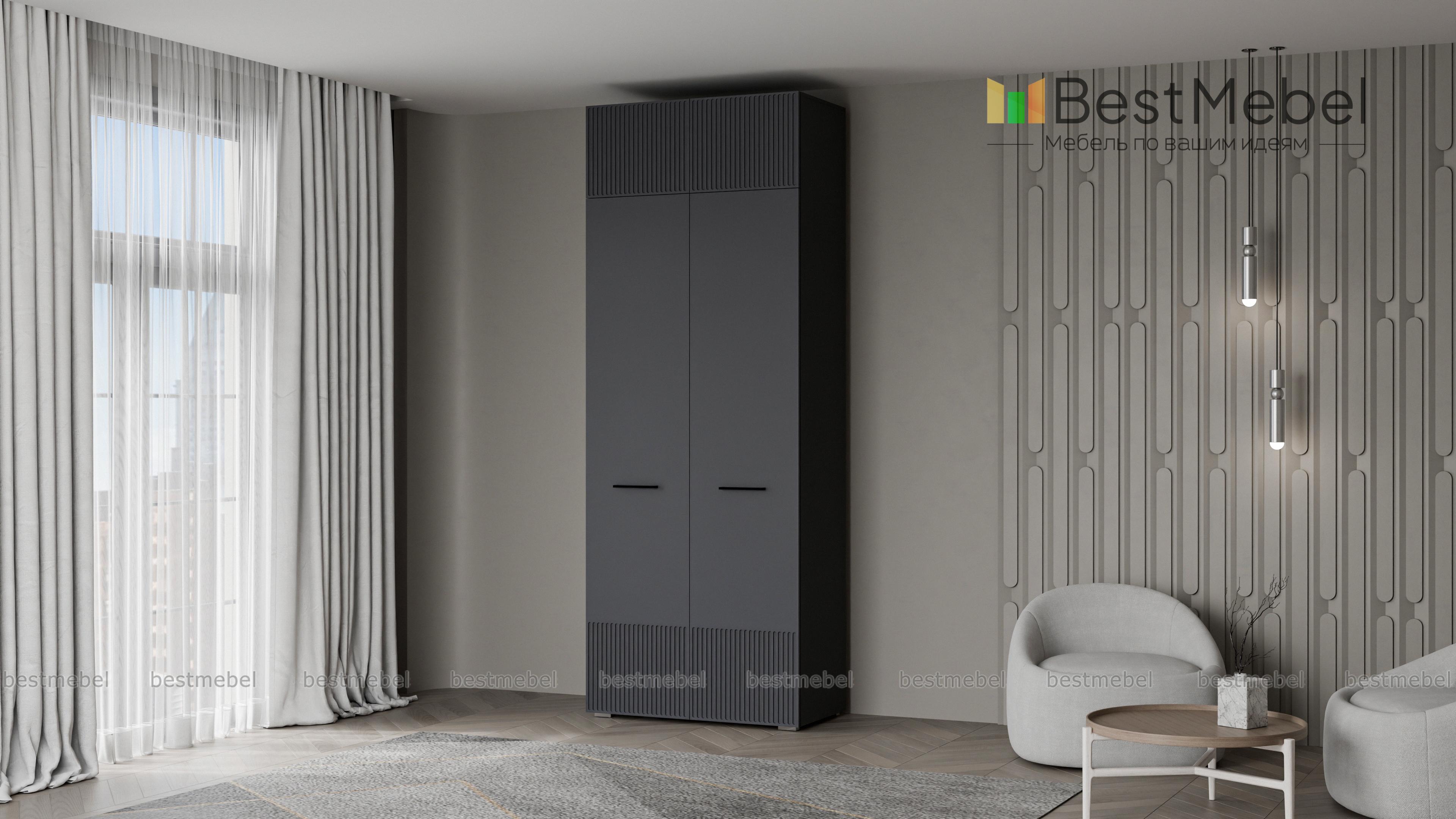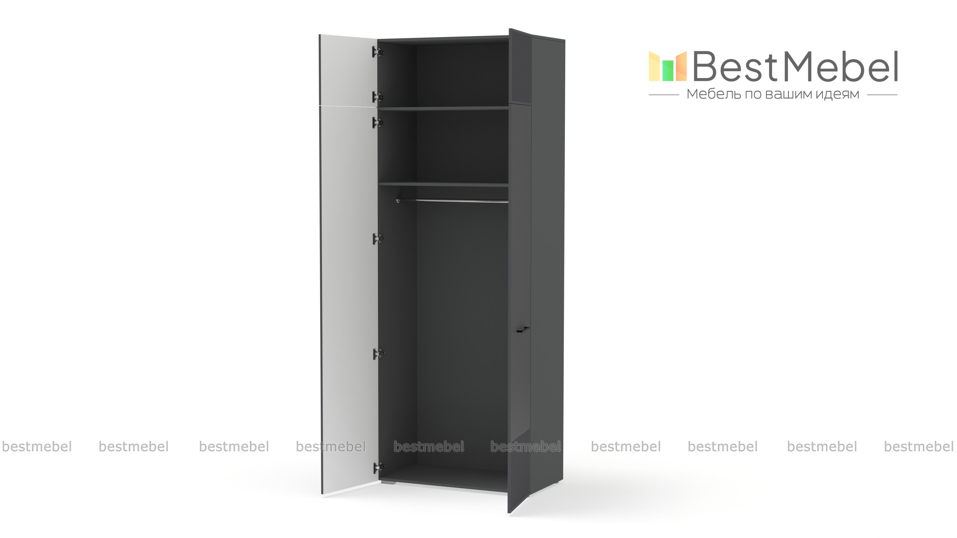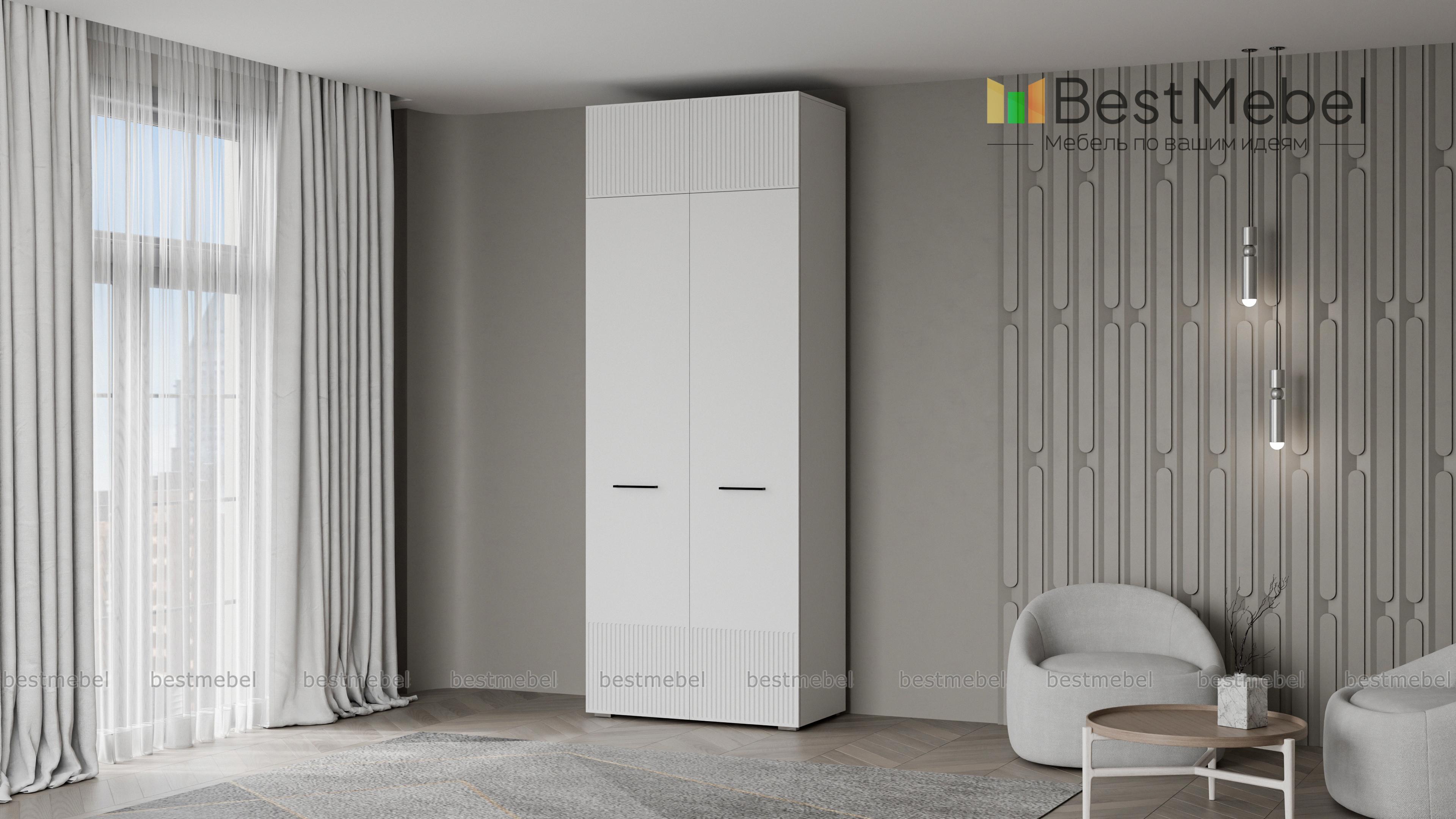 Шкаф распашной Декарт 8 BMS поможет быстро навести порядок в небольшой комнате. Двухдверный гардероб имеет базовое наполнение из штанги и верхней полки, а дополнительное пространство для хранения дает антресоль. Всегда актуально выглядит светлый фасад из МДФ с классической фрезерованной отделкой и контрастными поперечными скобами. Купить шкаф распашной Декарт 8 BMS в нужном размере и цветовой гамме приглашаем недорого на сайт нашего интернет-магазина.