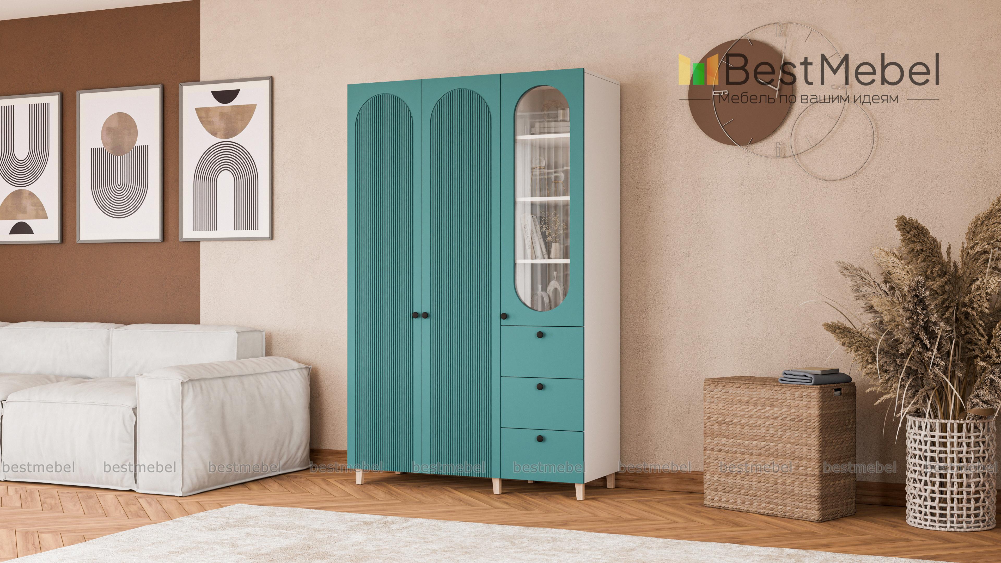 Шкаф распашной Рене 13 BMS объединил для хранения платяное отделение с двумя дверцами и витрину, комбинированную с тремя выдвижными ящиками. Одежда на вешалках, трикотаж, органайзеры с мелочами, книги и декор размещаются компактно и эстетично. Сочетание темных и природных древесных оттенков с декоративными вырезами и фрезеровкой — стильное современное решение. Купить шкаф распашной Рене 13 BMS вы всегда сможете в нашем интернет-магазине с изготовлением по индивидуальным размерам.