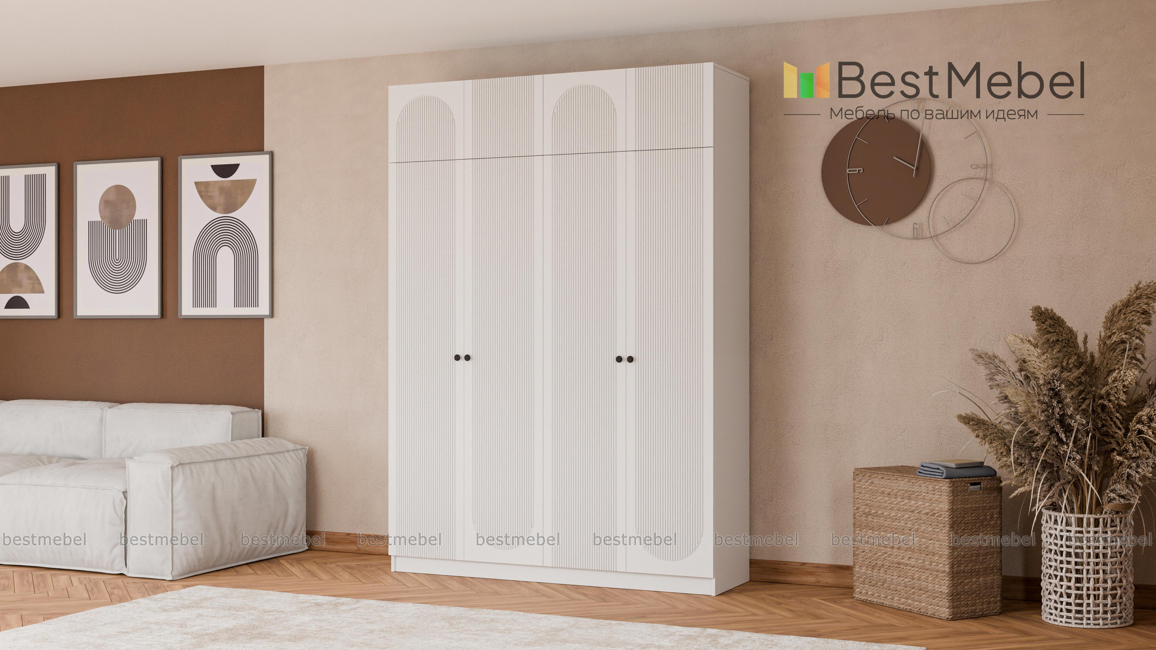 Шкаф распашной Рене 28 BMS по максимуму использует помещение в высоту. Модель оборудована двумя платяными отделениями, а дополнительное место хранения для редко используемых вещей создает антресоль. Четырехдверный гардероб совсем не выглядит громоздко благодаря светлому оформлению и изящному вертикальному рельефу на створках. Купить шкаф распашной Рене 28 BMS вы сможете в нашем интернет-магазине, самостоятельно подобрав размеры, цвет и фурнитуру.