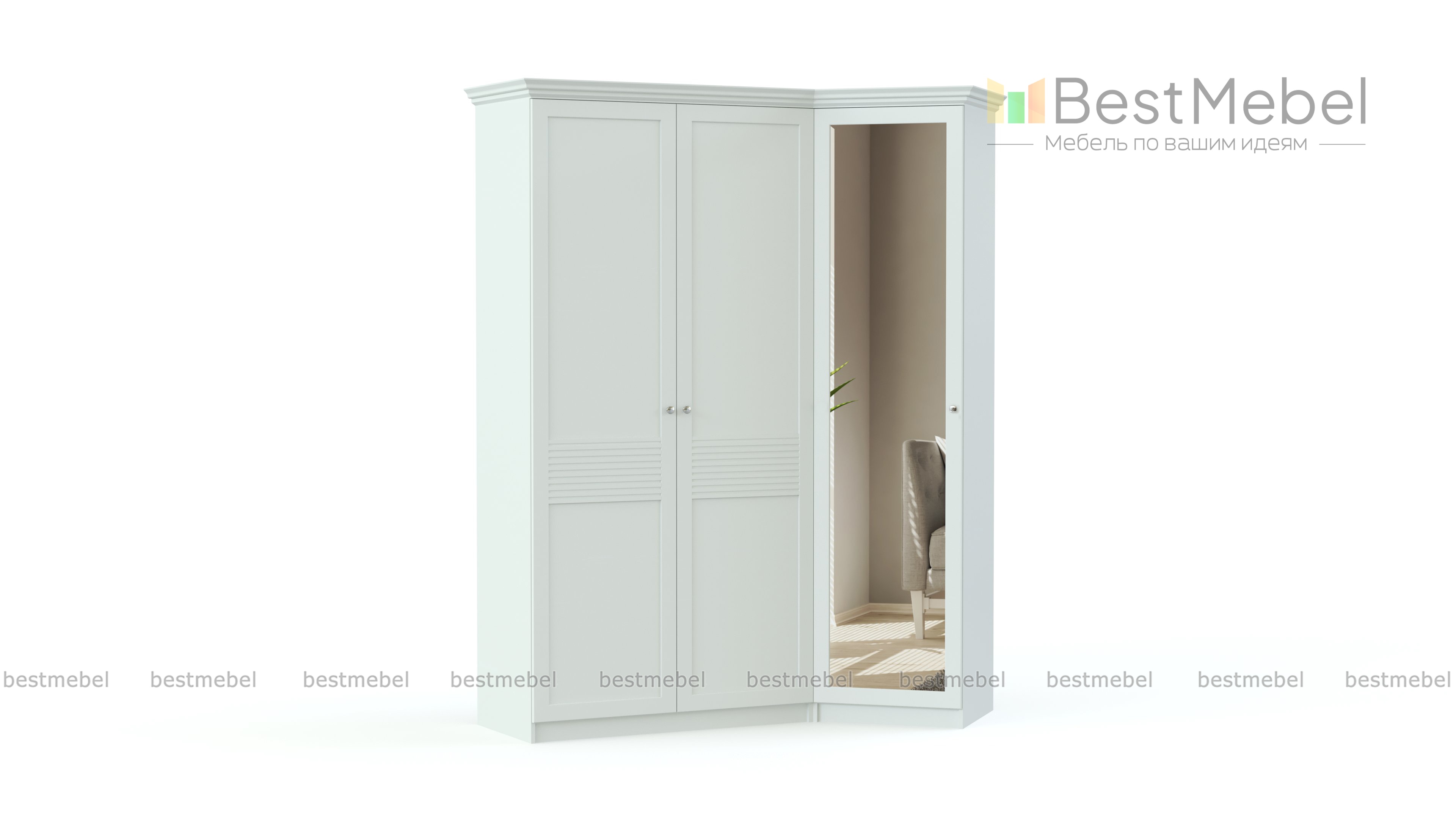 Шкаф Лючия 3 BMS станет частью роскошного интерьера в классическом стиле. Практичное решение для спальни, шкаф отличается угловой конструкцией, которая экономно использует полезную площадь, и вместительностью. Модель с фрезерованными фасадами выполнена в светлых древесных тонах и декорирована ручками под бронзу, одна из распашных створок – зеркальная, а верх украшает традиционный карниз. Купить шкаф Лючия 3 BMS, который порадует владельцев не только эффектным дизайном, но и долговечностью, приглашаем в наш интернет-магазин.