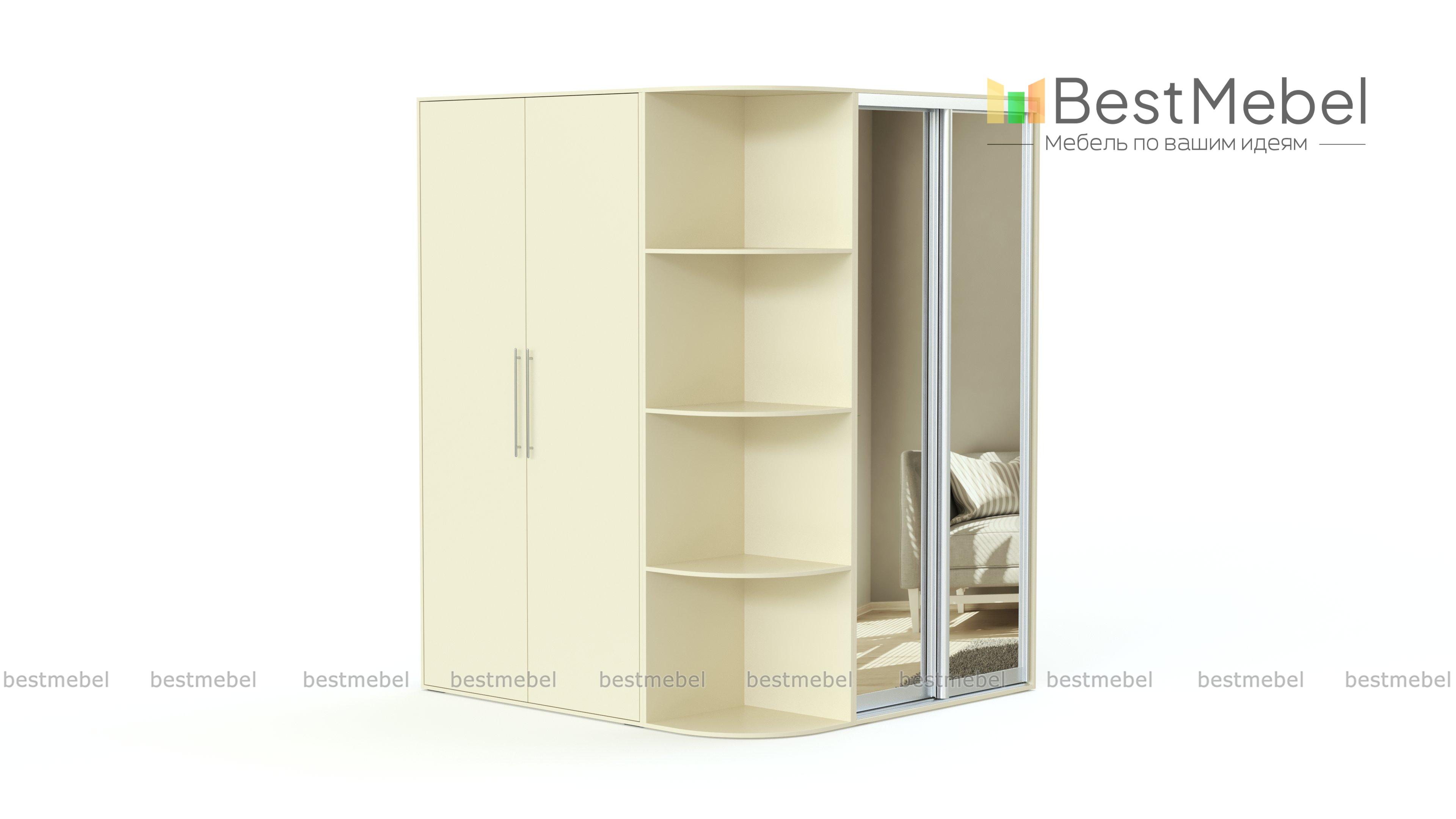 Шкаф угловой Aleks BMS представляет собой практичную композицию, которая поможет оборудовать просторную прихожую, спальню или гостиную удобной системой хранения. В состав шкафной группы входят двухдверный шкаф-купе, распашной шкаф и угловой стеллаж со скругленными полками. Благодаря продуманной конструкции вы сможете компактно разместить предметы гардероба, постельные принадлежности, книги, интерьерные мелочи и многое другое, разгрузив другие помещения дома. Светлые древесные тона и зеркальные поверхности – универсальный выбор для современного интерьера. Купить шкаф угловой Aleks BMS приглашаем в наш интернет-магазин по доступной цене.