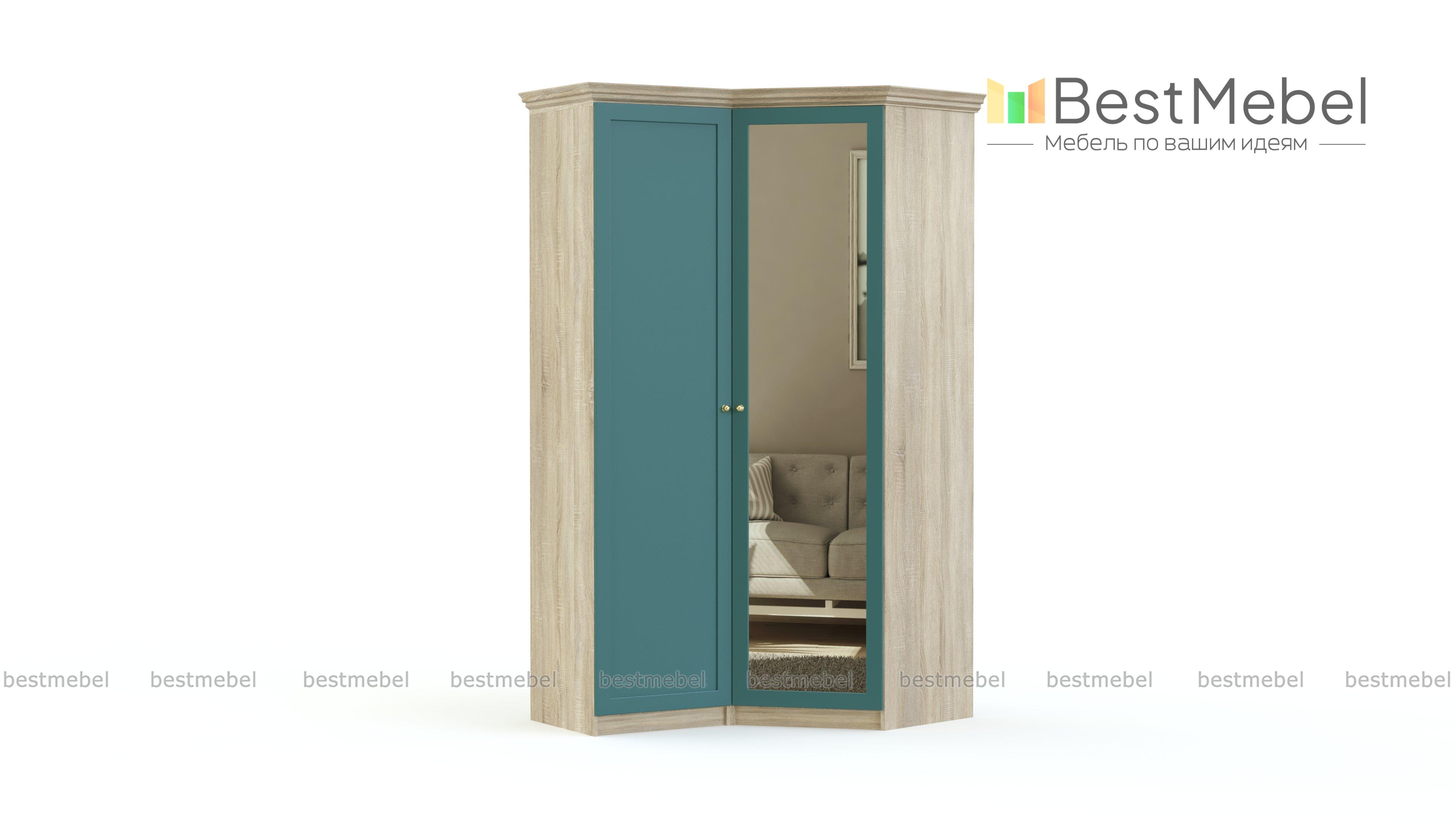 Шкаф угловой Камалия BMS может стать самостоятельным предметом меблировки спальни или частью шкафной группы. Модель с фрезерованными фасадами в глубоких тонах украшена карнизом, ручками-кнопками под бронзу и не оставит равнодушными ценителей классики. Шкаф оборудован двумя распашными дверцами – глухой и зеркальной, внутреннее наполнение из штанги и бельевых полок компактно разместит все необходимое и поможет поддерживать в комнате порядок. Купить шкаф угловой Камалия BMS для элегантного интерьера приглашаем в наш интернет-магазин.