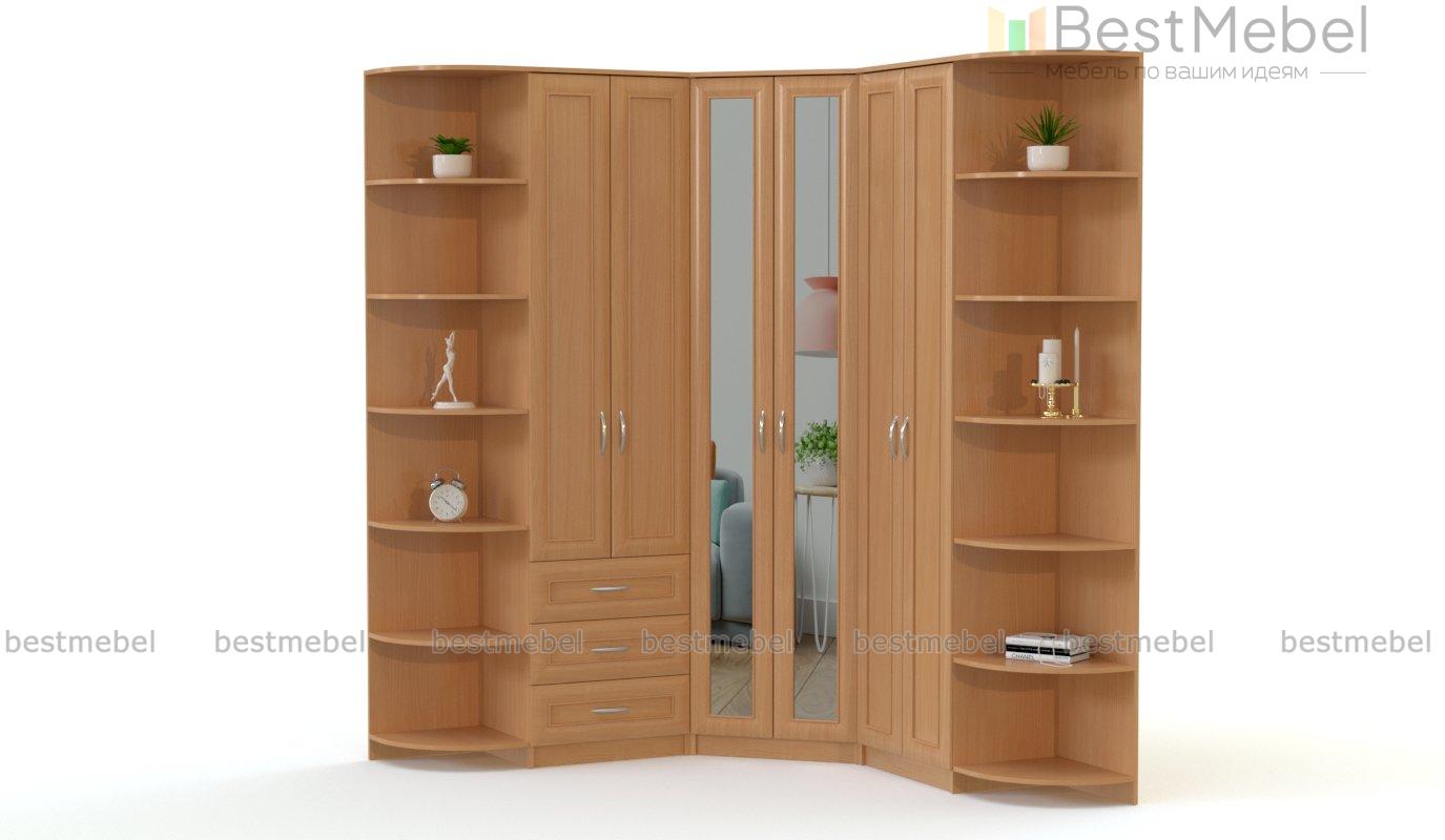 Угловой шкаф Мира BMS – это продуманная до мелочей система хранения и практичная конструкция, позволяющая сэкономить пространство. Композиция объединила три двухдверных шкафа – угловой с зеркальным фасадом, закрытый и комбинированный с выдвижными ящиками, а также торцевые стеллажи с радиусными полками. Шкаф с рамочными фасадами выполнен в классическом стиле и смотрится актуально в крафтовых древесных тонах. Купить угловой шкаф Мира BMS и компактно разместить большое количество вещей вам поможет наш интернет-магазин.