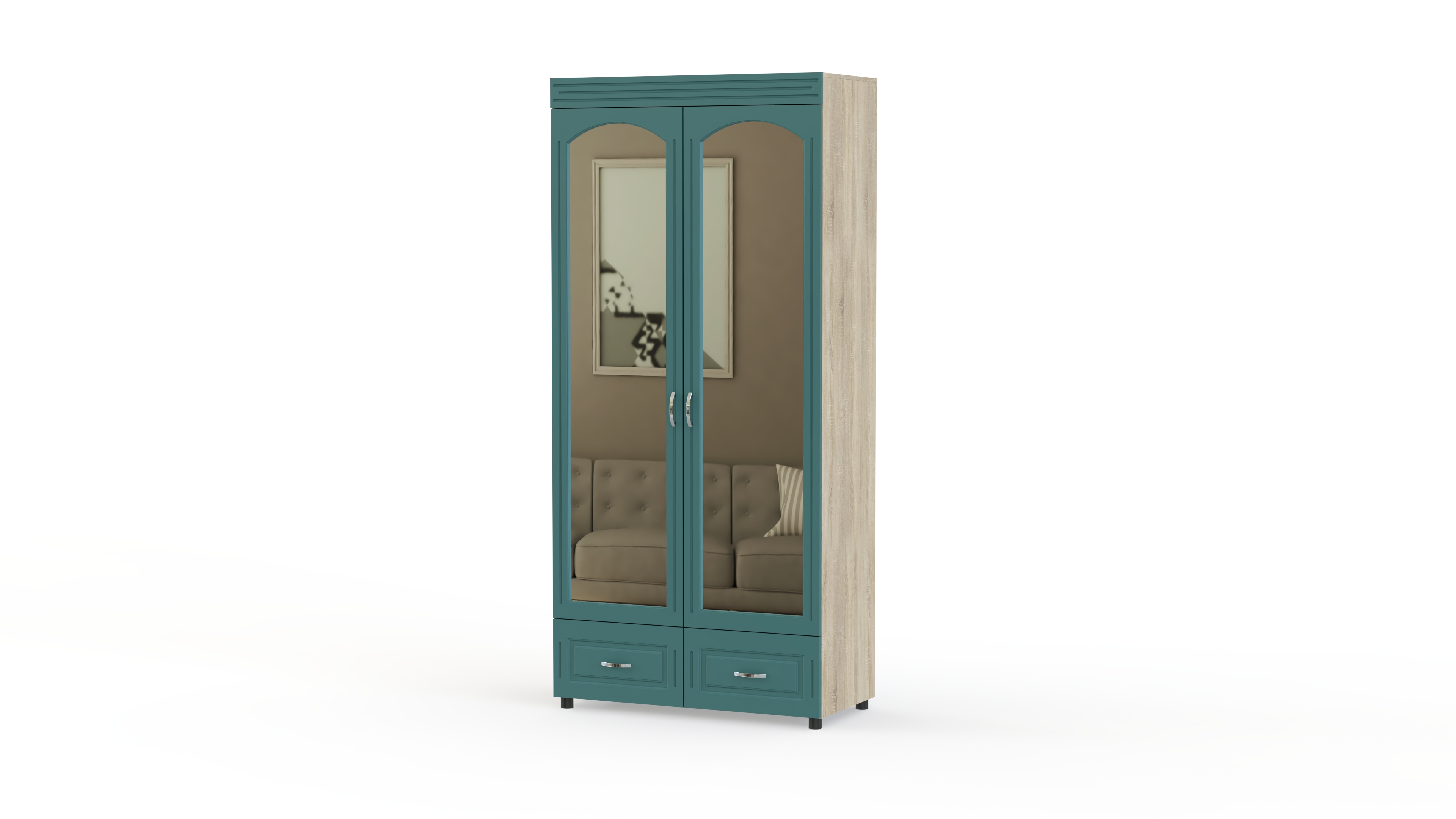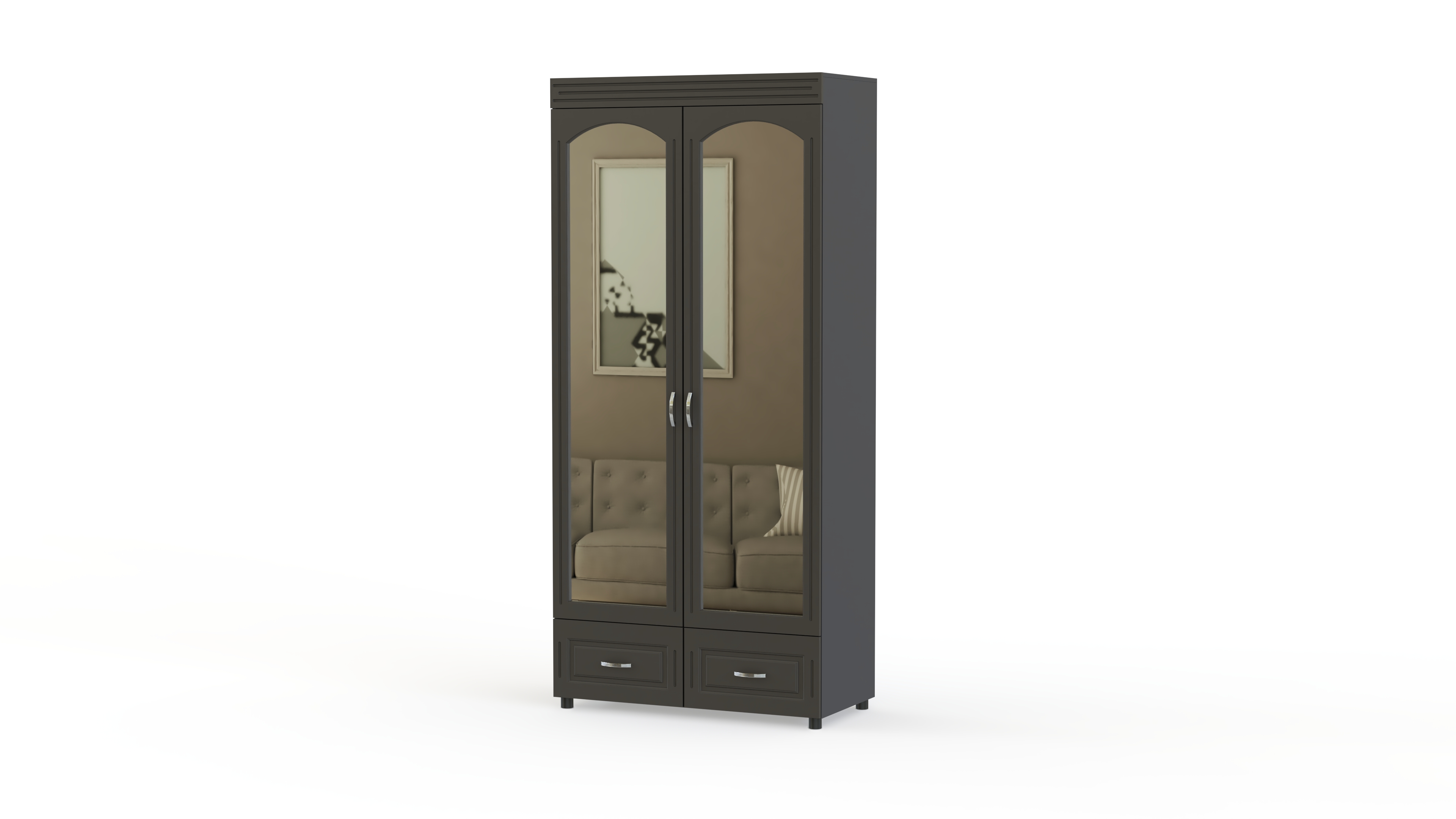 Элегантный классический комплект для спальни Элизабет Композиция 3 BMS, выполненный в светлых тонах, выглядит особенно легко и атмосферно и станет в интерьере вашего дома стильным акцентом. В гарнитур входят платяной шкаф с изящными полукруглыми зеркалами, туалетный столик с навесным широким зеркалом, удобная двуспальная кровать и две прикроватные тумбы. Фасады мебели декорированы металлическими, под позолоту, оригинальными ручками, придающими всему комплекту винтажный оттенок.