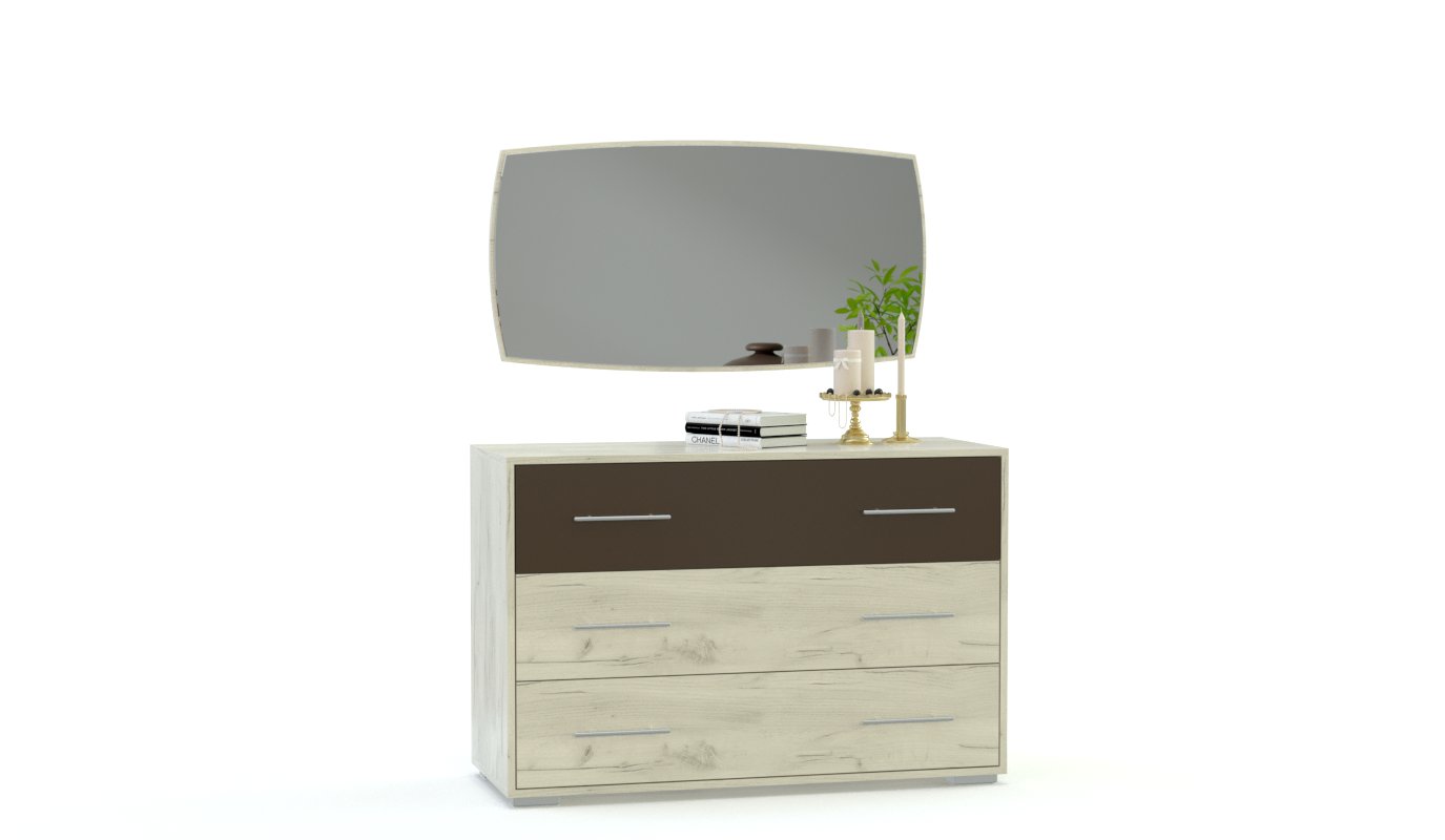 Спальня Триша 3 BMS станет отличным выбором для интерьера современной квартиры, сочетая в себе модный минимализм и цветовое решение в теплой коричнево-бежевой гамме. Композиция включает в себя кровать с высокой спинкой изголовья, дополненной мягкой накладкой, прикроватные тумбы, вместительный бельевой комод с навесным зеркалом и трехдверный распашной шкаф для хранения гардероба. Глянцевые фасады предметов эффектно смотрятся, износостойки и долговечны. Купить спальню Триша 3 BMS приглашаем выгодно в наш интернет-магазин.