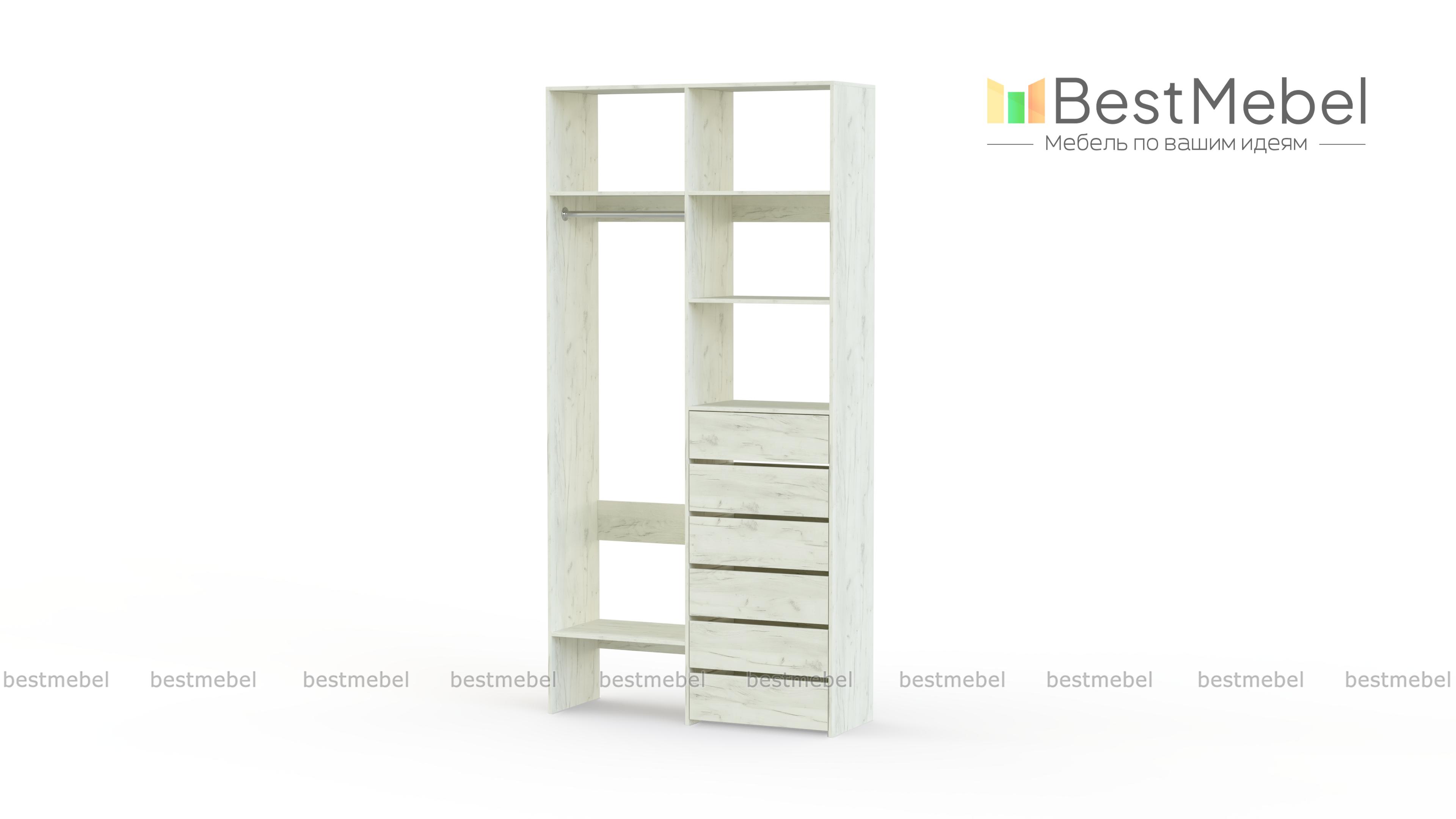Стеллаж для одежды Мирта 38 BMS включает в себя разноплановые отделения для максимально удобного хранения. Платяное отделение слева и ряд из шести выдвижных ящиков справа дополнены вместительными бельевыми полками. Благодаря изготовлению из ламинированной ДСП стеллаж доступен по цене, прост в уходе и имеет широкую цветовую палитру. Купить стеллаж для одежды Мирта 38 BMS в необходимом вам размере и цвете вы всегда сможете на сайте нашего интернет-магазина.