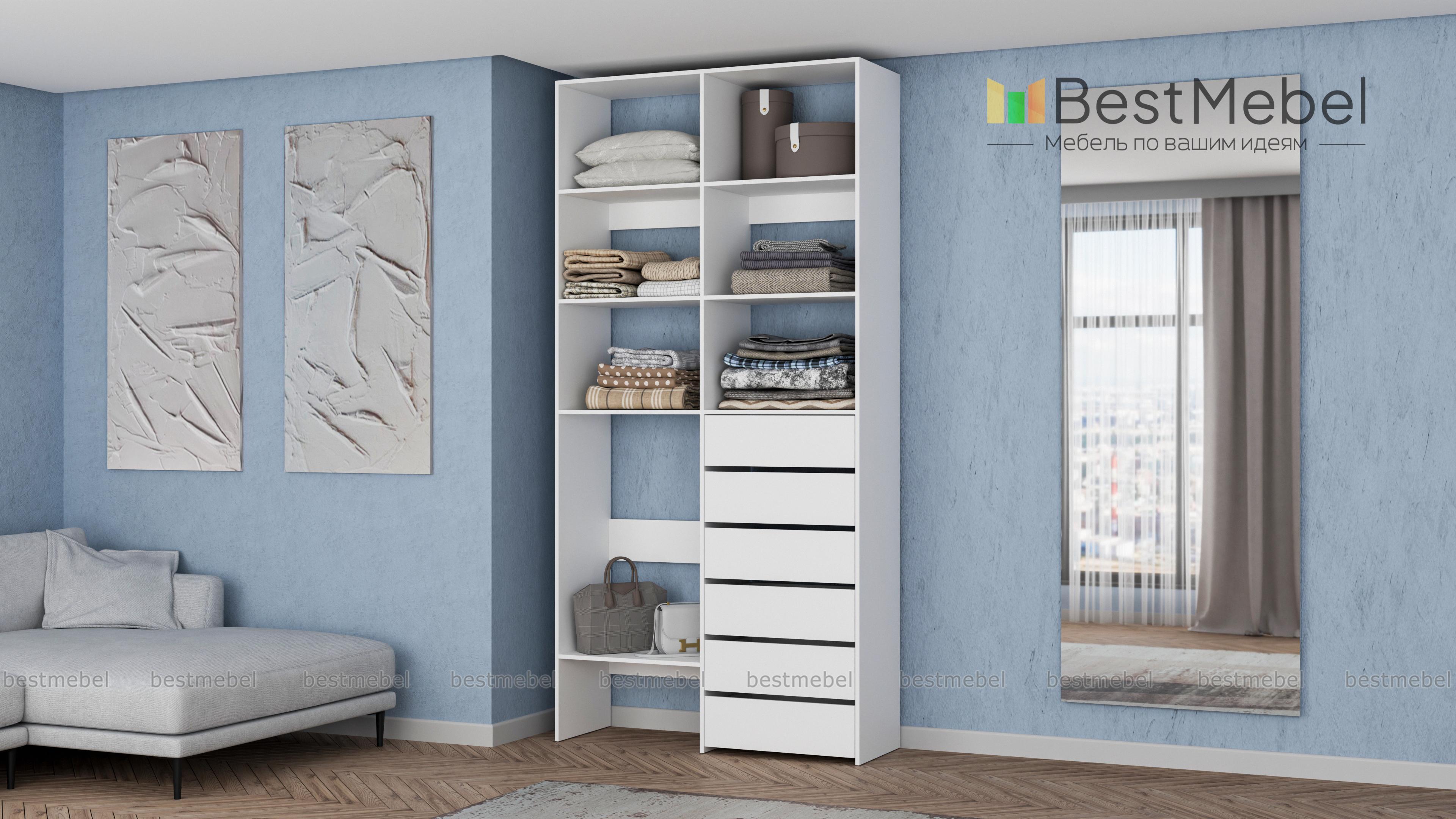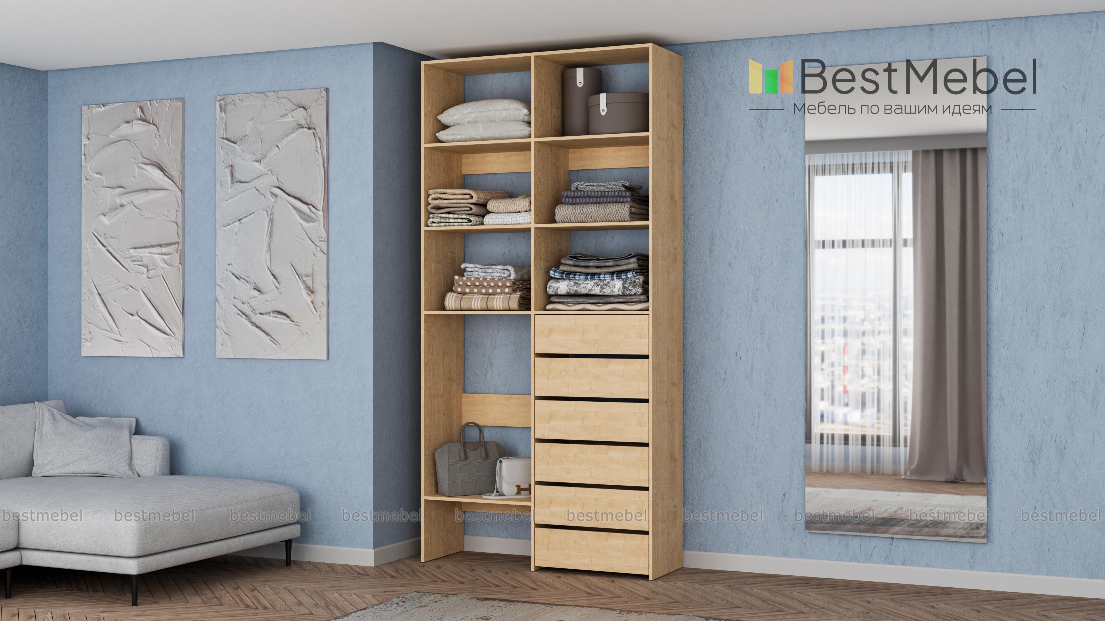 Стеллаж для одежды Мирта 39 BMS представляет собой готовое решение для вашей прихожей или гардеробной комнаты. Расположенные на разной высоте полки и целых шесть выдвижных ящиков позволят вам разместить как мелкие, так и габаритные вещи: одежду, обувные коробки и всевозможные аксессуары. Для изготовления стеллажа использован современный экологичный материал — ламинированная ДСП. Купить стеллаж для одежды Мирта 39 BMS в оттенках нашего каталога на выбор вы сможете на сайте интернет-магазина.