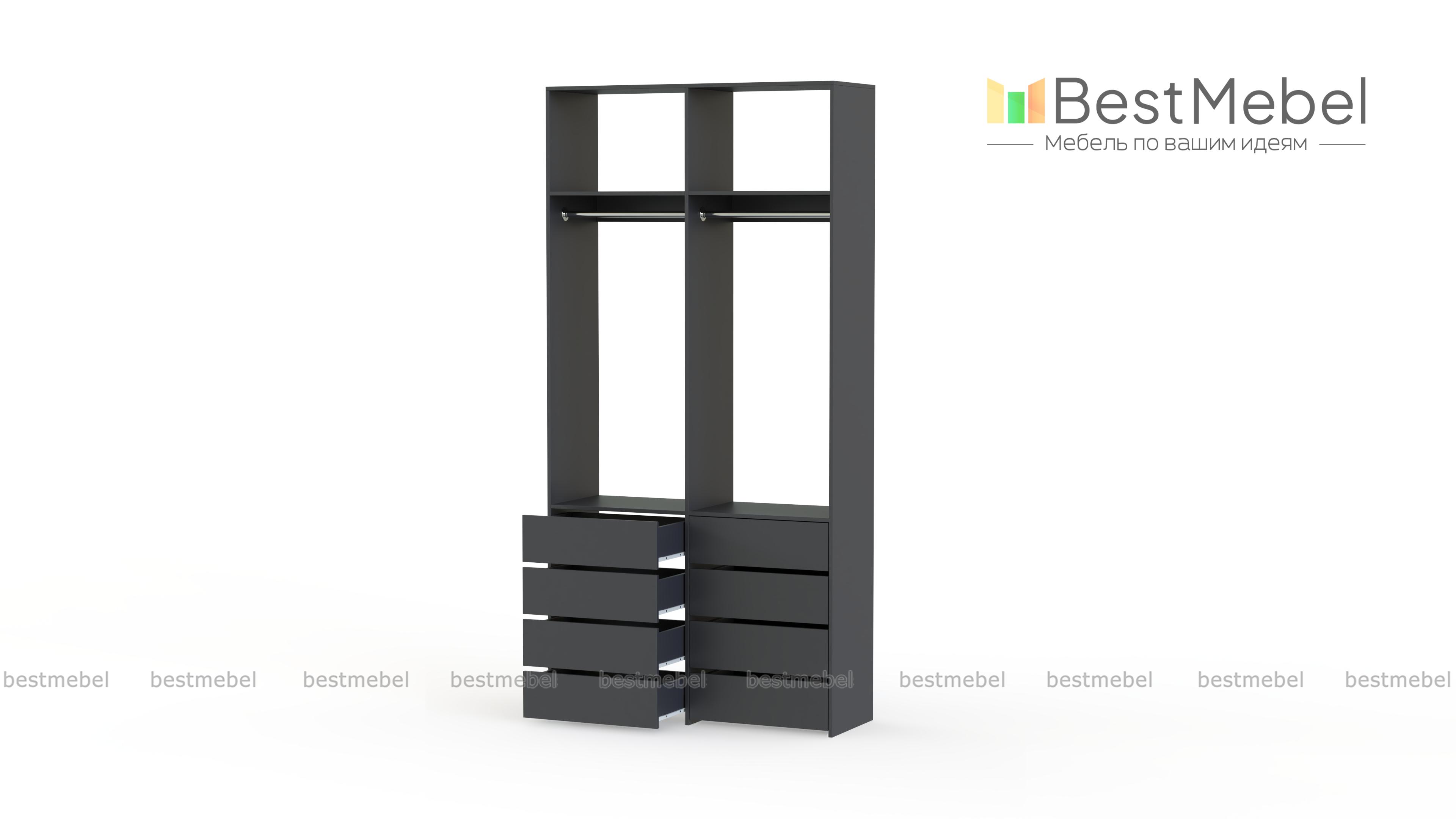Стеллаж для одежды Мирта 44 BMS — это готовое решение в вашу гардеробную или прихожую. Продуманной системой хранения с двумя штангами, верхними полками и двумя рядами бельевых ящиков удобно пользоваться, не тратя время на поиски нужных вещей. Ламинированное покрытие эстетично выглядит, отличается прочностью и долговечностью. Купить стеллаж для одежды Мирта 44 BMS вы сможете на сайте нашего интернет-магазина с изготовлением по индивидуальным размерам.