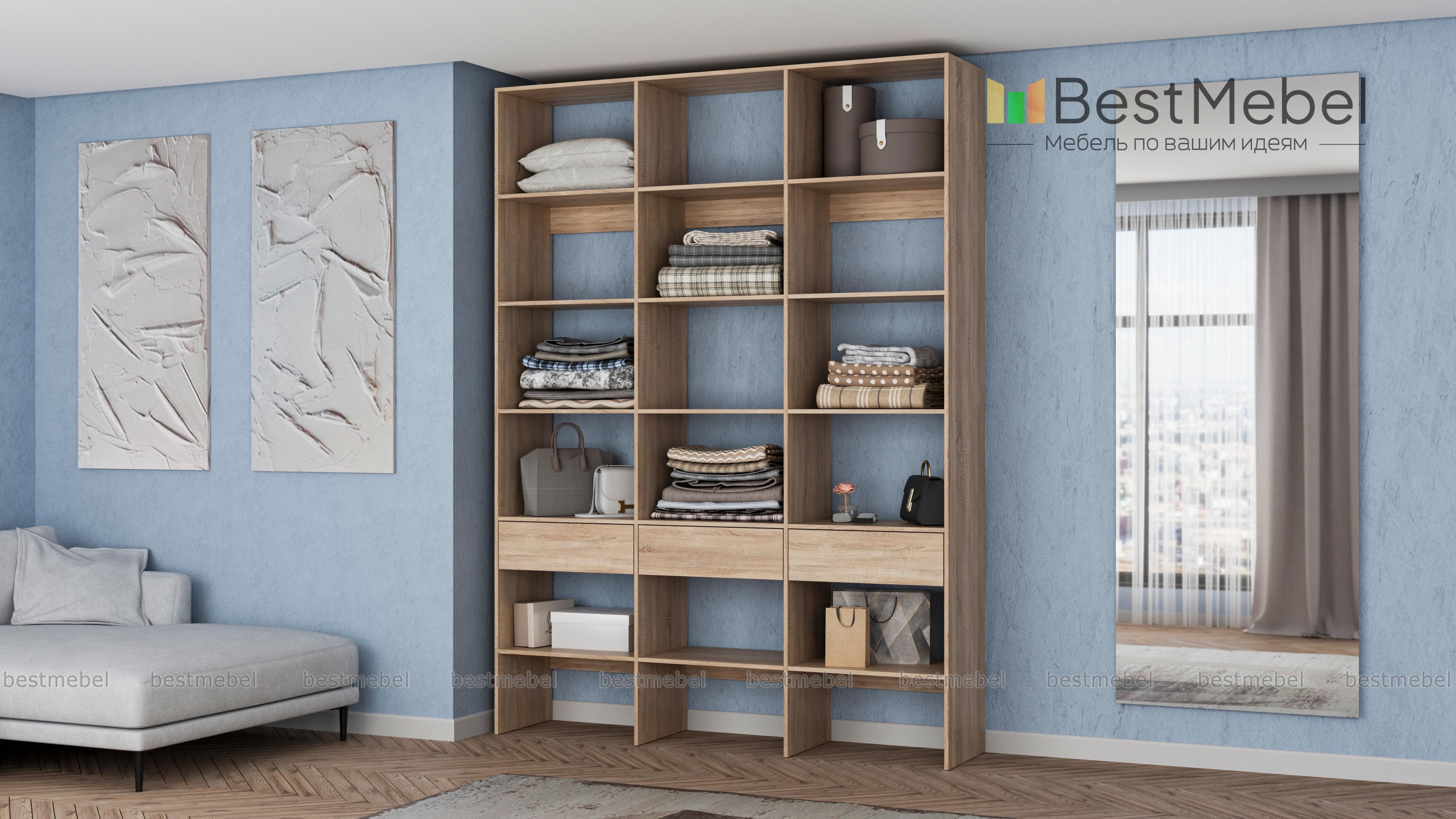 Стеллаж для одежды Мирта 56 BMS прекрасно подойдет для хранения сложенной одежды, домашнего текстиля, коробок с вещами и мелкого трикотажа. Пространство трехсекционного стеллажа разделено просторными полками, а в нижней части дополнено выдвижными ящиками. Благодаря изготовлению из ламинированной плиты конструкция отличается прочностью, поверхности надолго сохраняют привлекательный внешний вид. Купить стеллаж для одежды Мирта 56 BMS вы сможете на сайте нашего интернет-магазина, подобрав цвет и размеры.