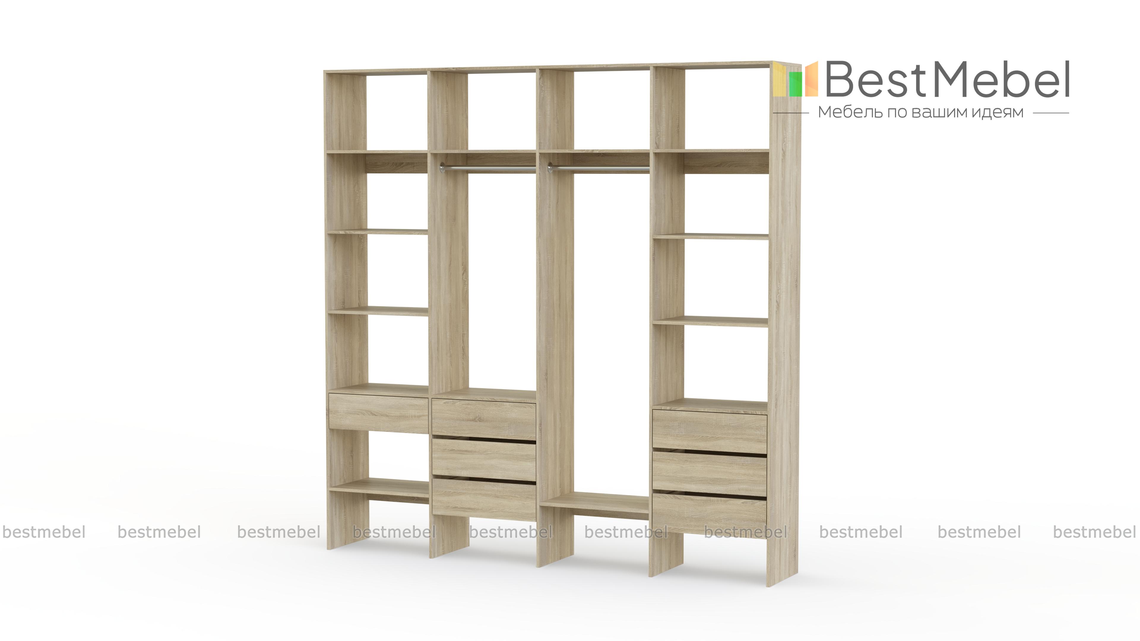 Стеллаж для одежды Мирта 67 BMS сделает пространство вашего дома легче и свободнее. Открытая конструкция объединила две штанги — под одежду разной длины, бельевые полки и удобную комбинацию выдвижных ящиков. Отсутствие декора и накладной фурнитуры в сочетании с базовым оттенком и простотой линий делает стеллаж по-настоящему универсальным. Купить стеллаж для одежды Мирта 67 BMS вы всегда сможете на сайте нашего интернет-магазина, по желанию изменив цвет и размеры.